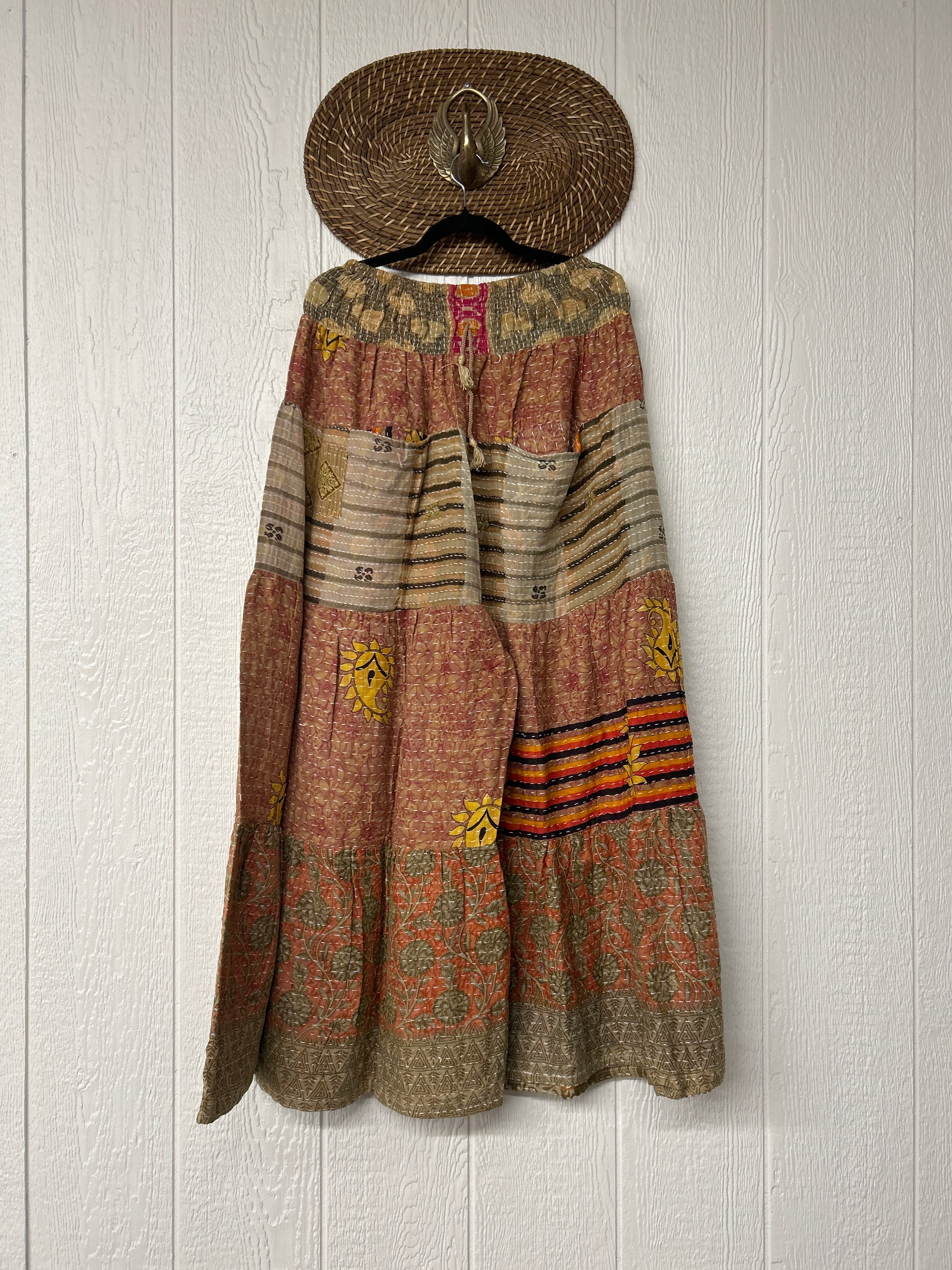 Crafted from our ultra lux Kantha stitched cotton sari, the bold design of the Lotus Wide Leg Pants features tiered wide legs for an exaggerated silhouette and a slouchy interior pocket that is absolute perfection!
