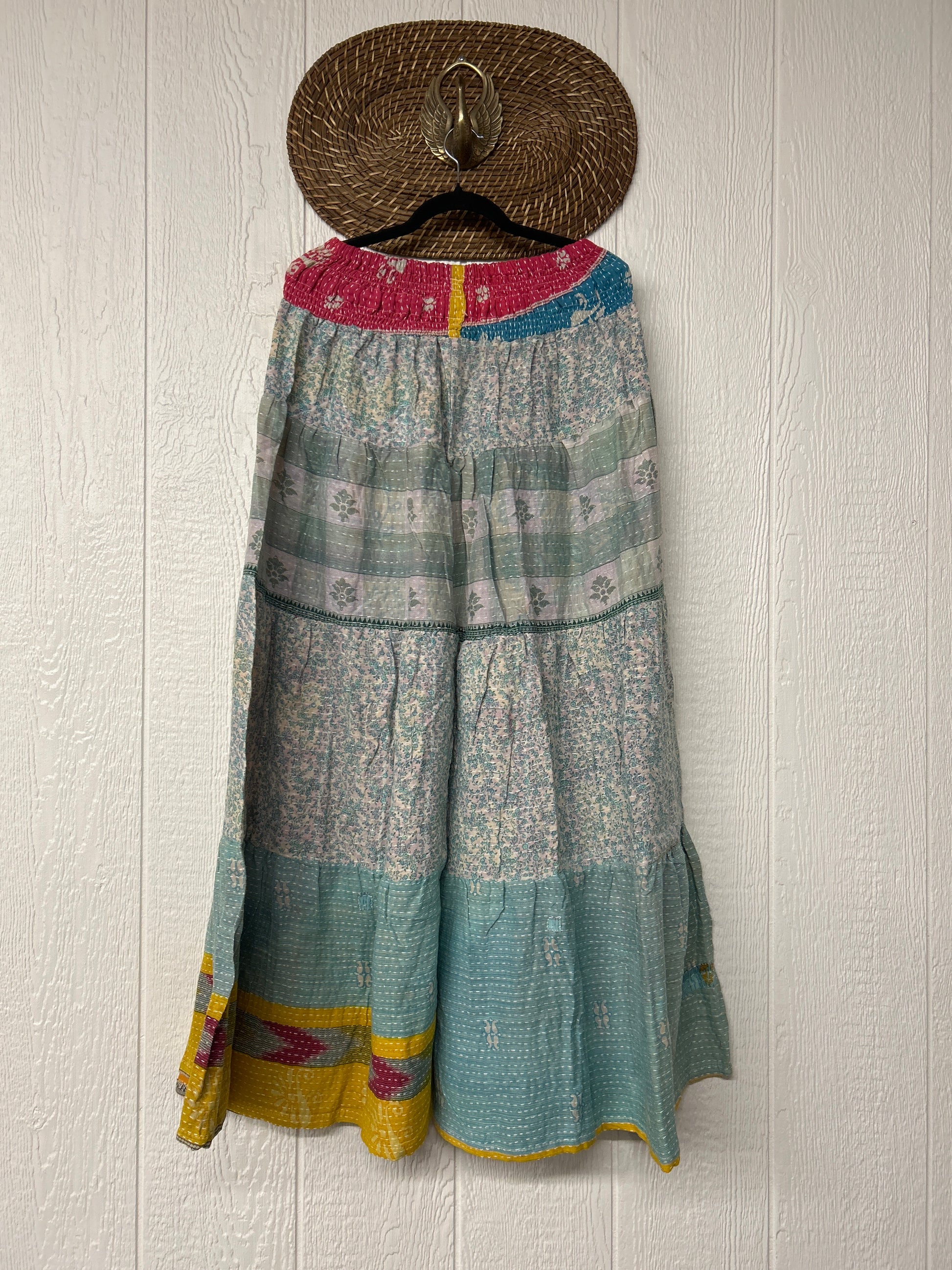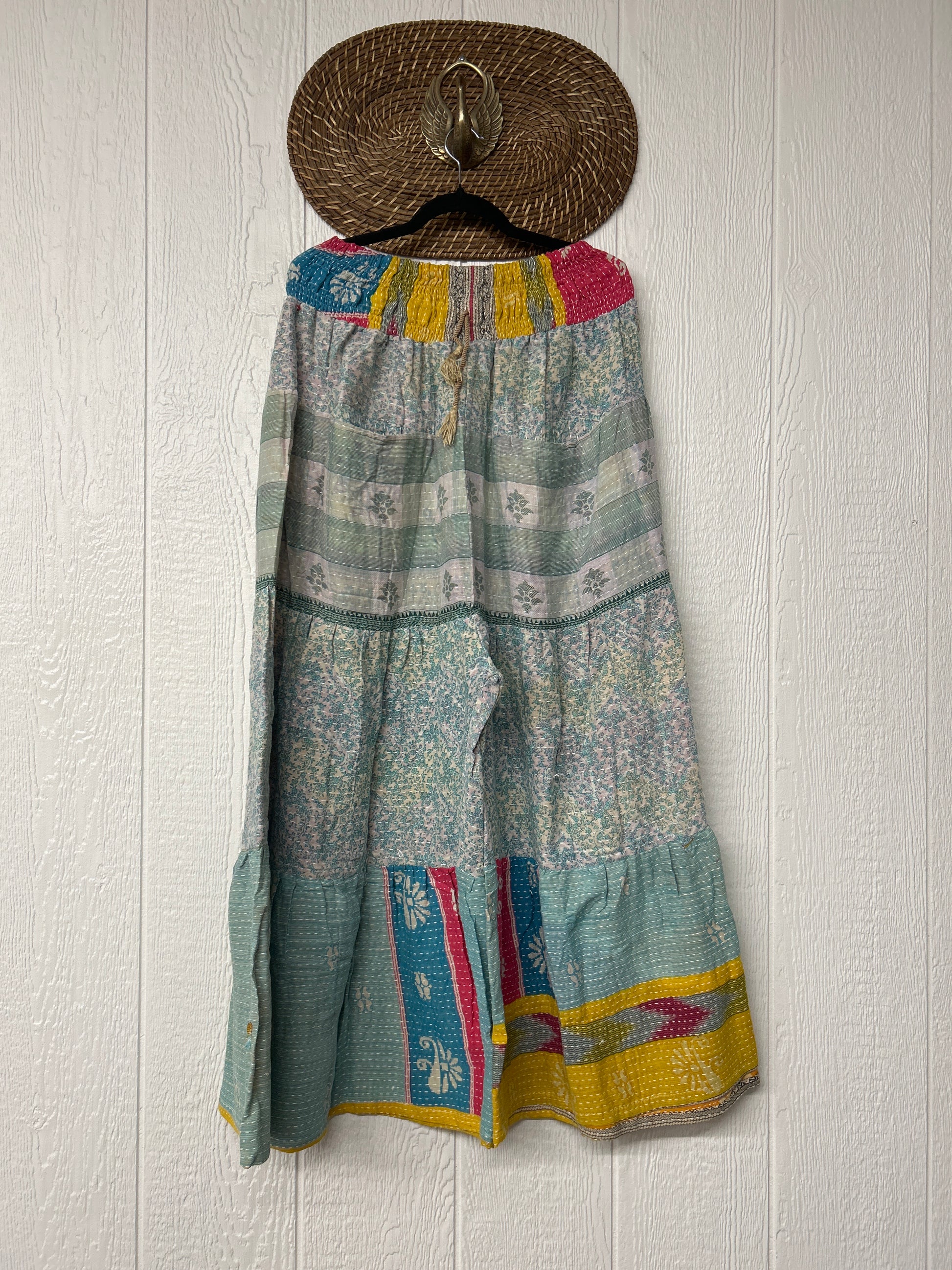 Crafted from our ultra lux Kantha stitched cotton sari, the bold design of the Lotus Wide Leg Pants features tiered wide legs for an exaggerated silhouette and a slouchy interior pocket that is absolute perfection!
