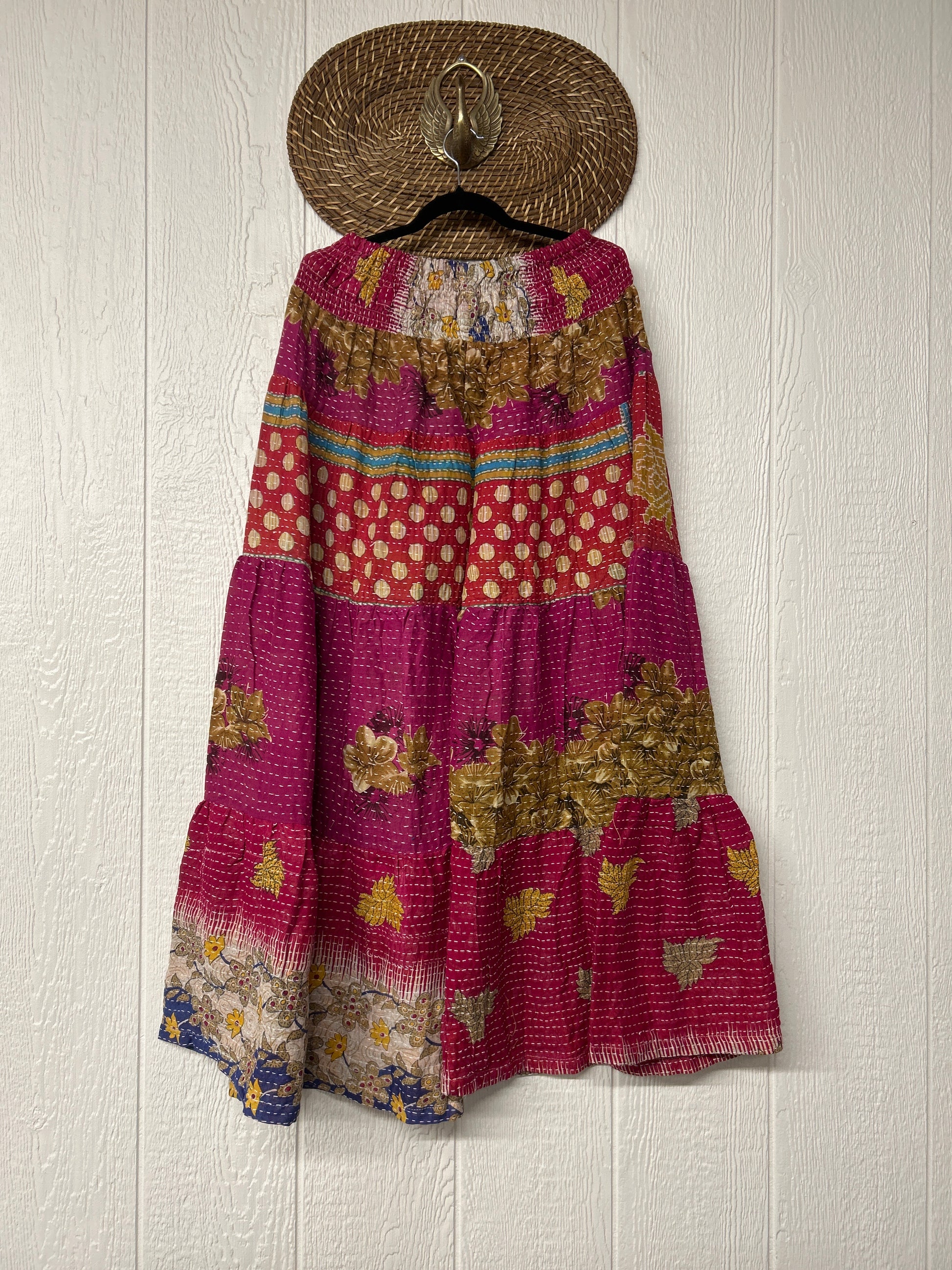 Disclosure: Our vintage styles have lived a full life before becoming the designs in our shop. Fabrics may have small threads or holes in the layers. Color inconsistency or small stains may be present. The saris are sewn together and extend the life of each design.