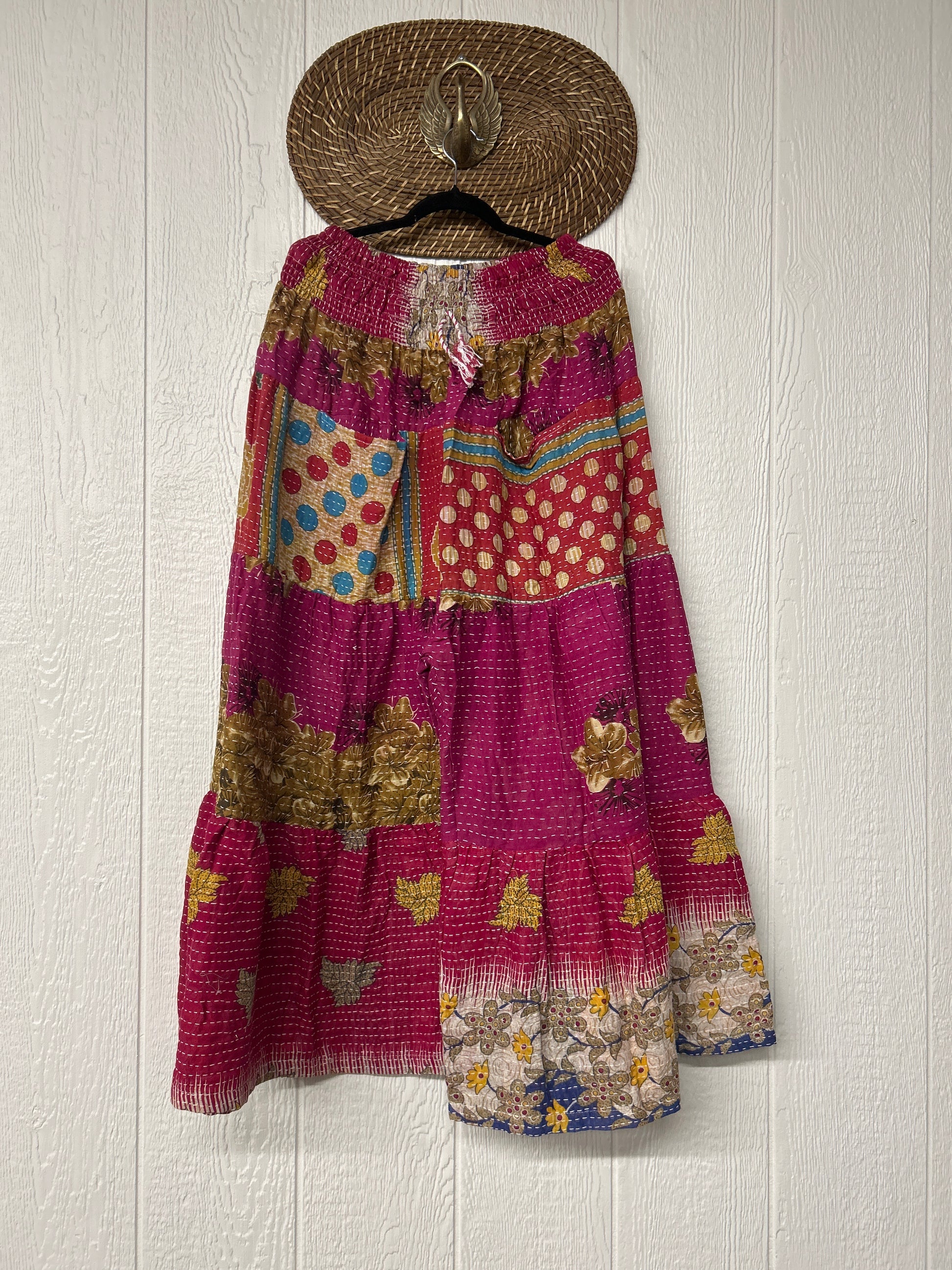 Crafted from our ultra lux Kantha stitched cotton sari, the bold design of the Lotus Wide Leg Pants features tiered wide legs for an exaggerated silhouette and a slouchy interior pocket that is absolute perfection!