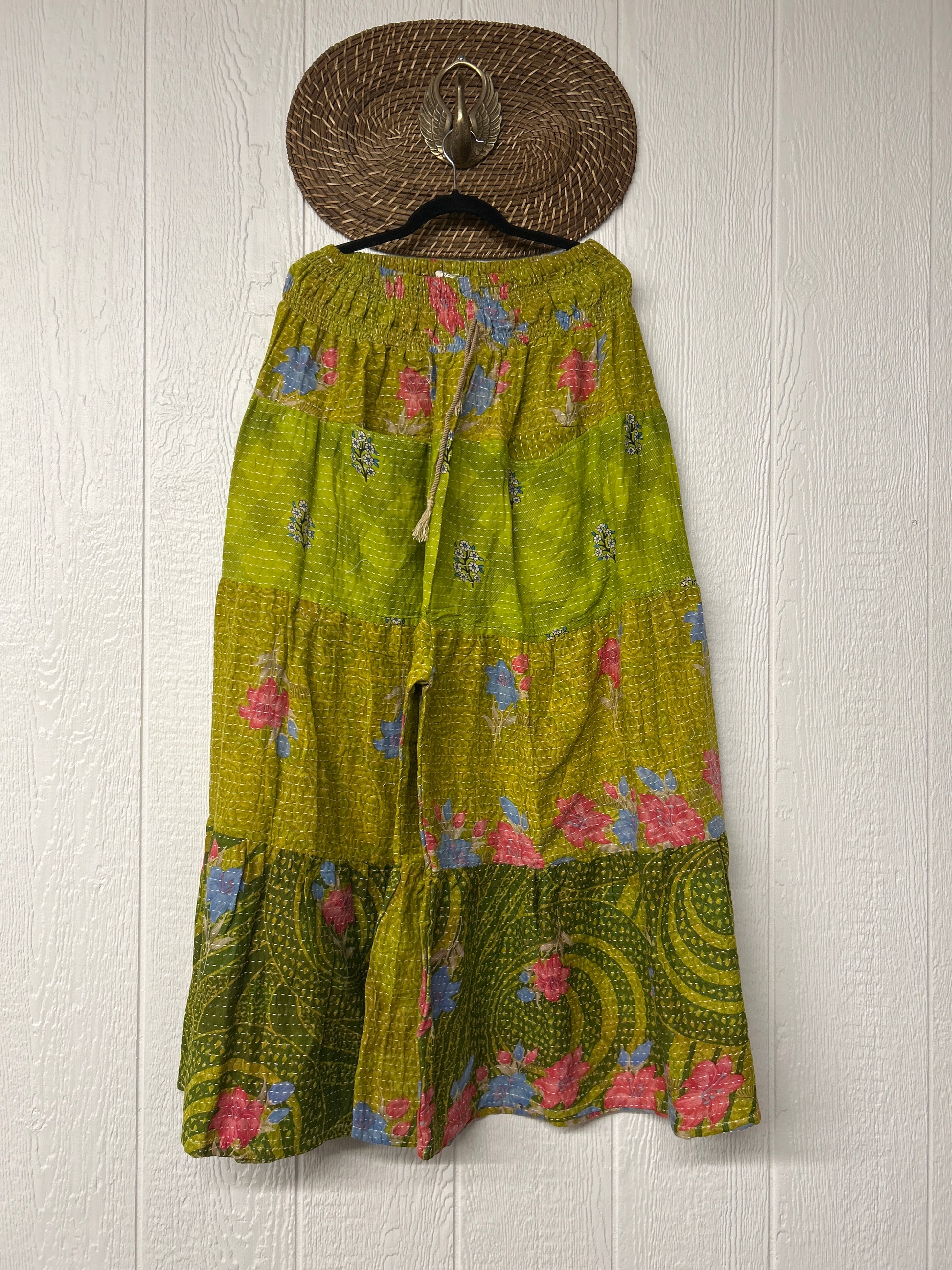 Crafted from our ultra lux Kantha stitched cotton sari, the bold design of the Lotus Wide Leg Pants features tiered wide legs for an exaggerated silhouette and a slouchy interior pocket that is absolute perfection!