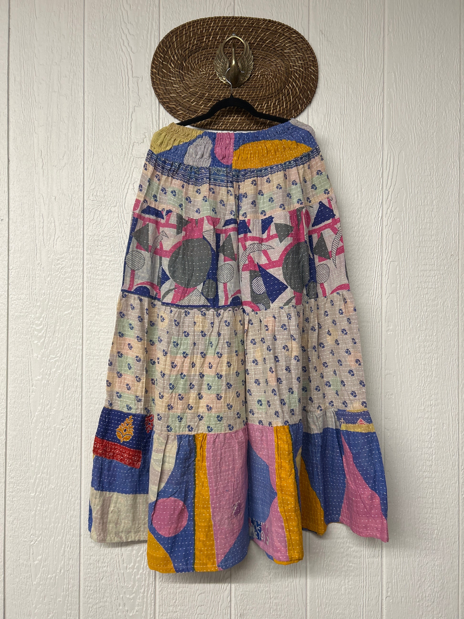 Crafted from our ultra lux Kantha stitched cotton sari, the bold design of the Lotus Wide Leg Pants features tiered wide legs for an exaggerated silhouette and a slouchy interior pocket that is absolute perfection!