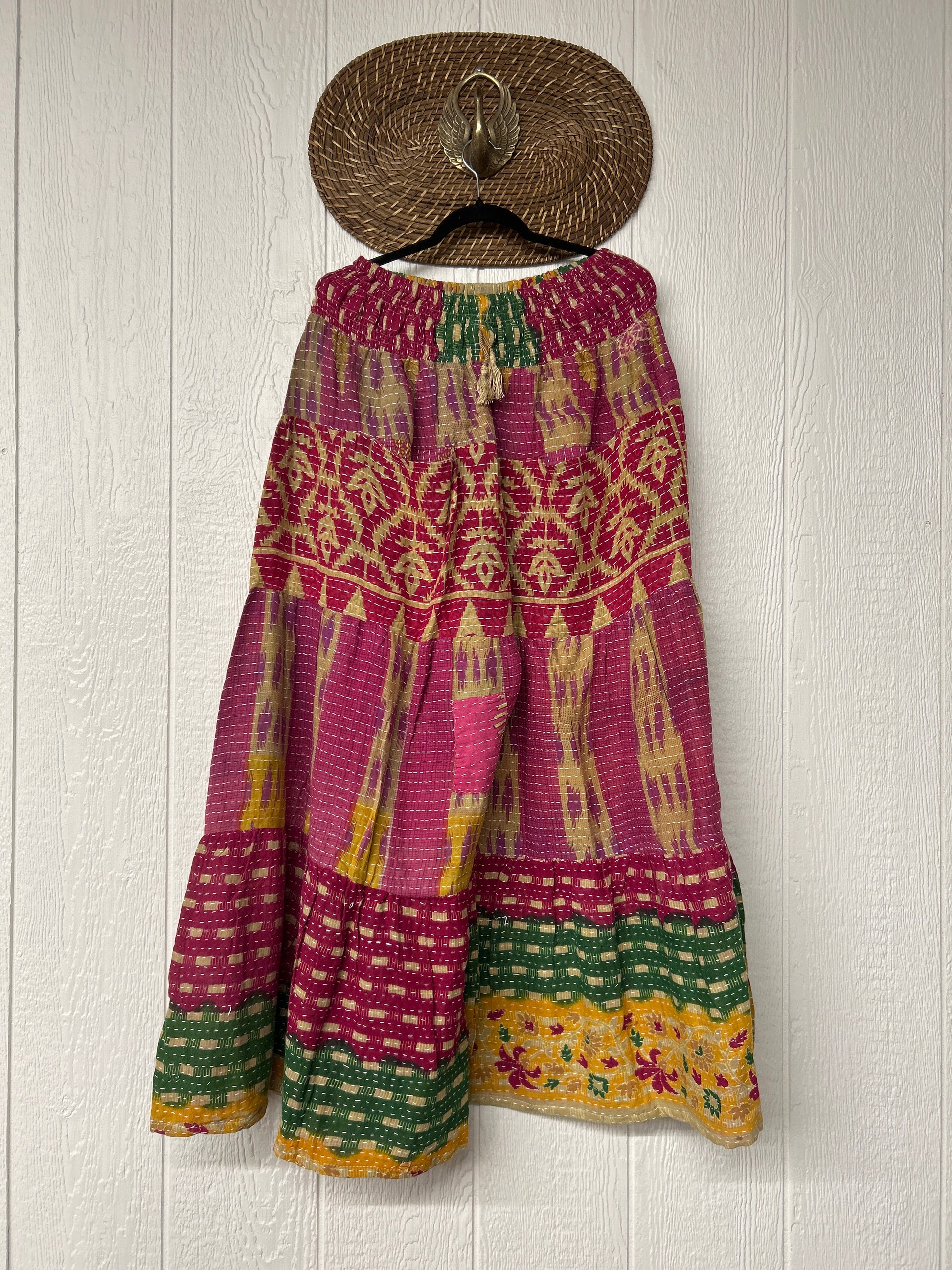 Crafted from our ultra lux Kantha stitched cotton sari, the bold design of the Lotus Wide Leg Pants features tiered wide legs for an exaggerated silhouette and a slouchy interior pocket that is absolute perfection!