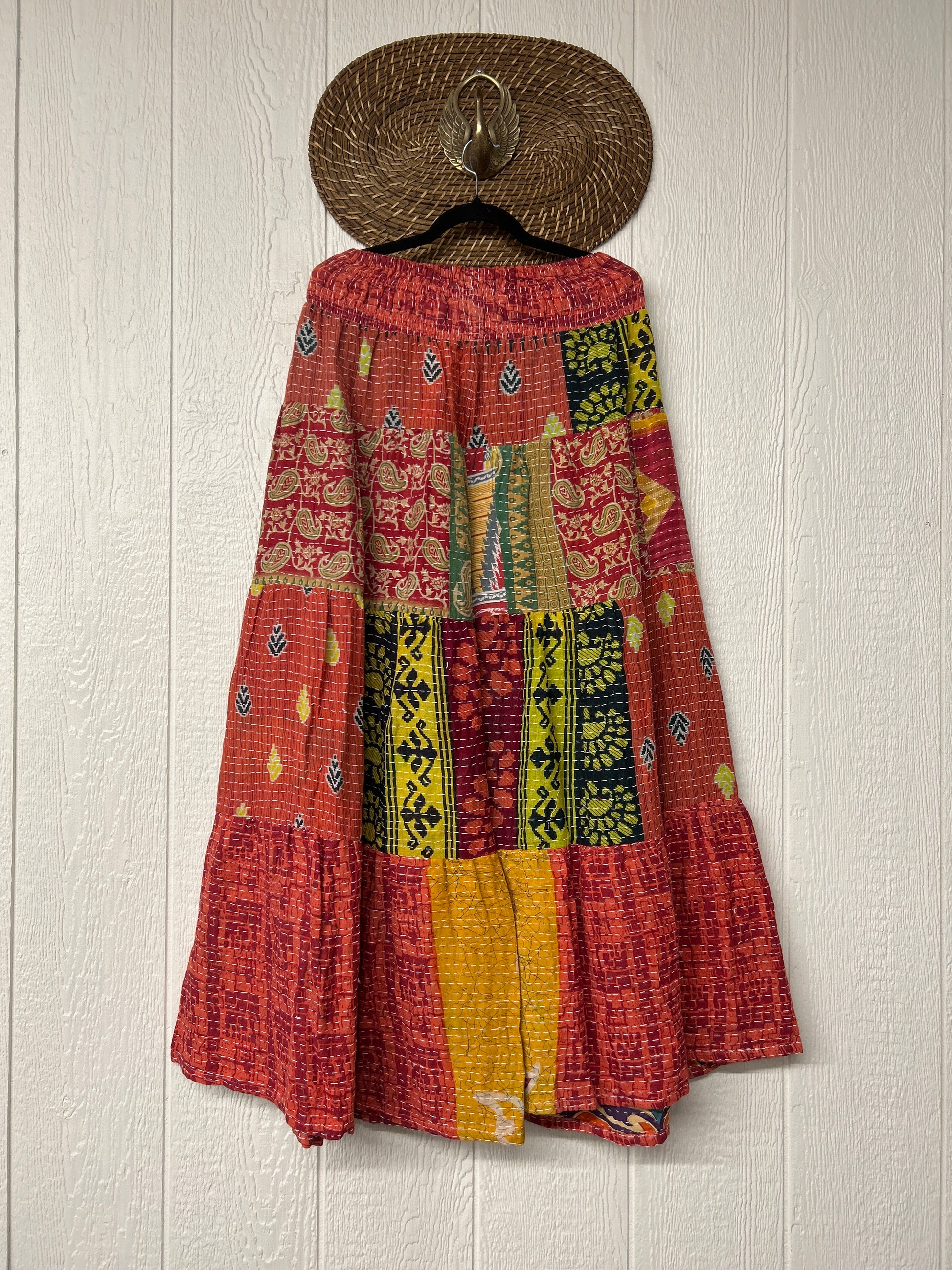 Crafted from our ultra lux Kantha stitched cotton sari, the bold design of the Lotus Wide Leg Pants features tiered wide legs for an exaggerated silhouette and a slouchy interior pocket that is absolute perfection!