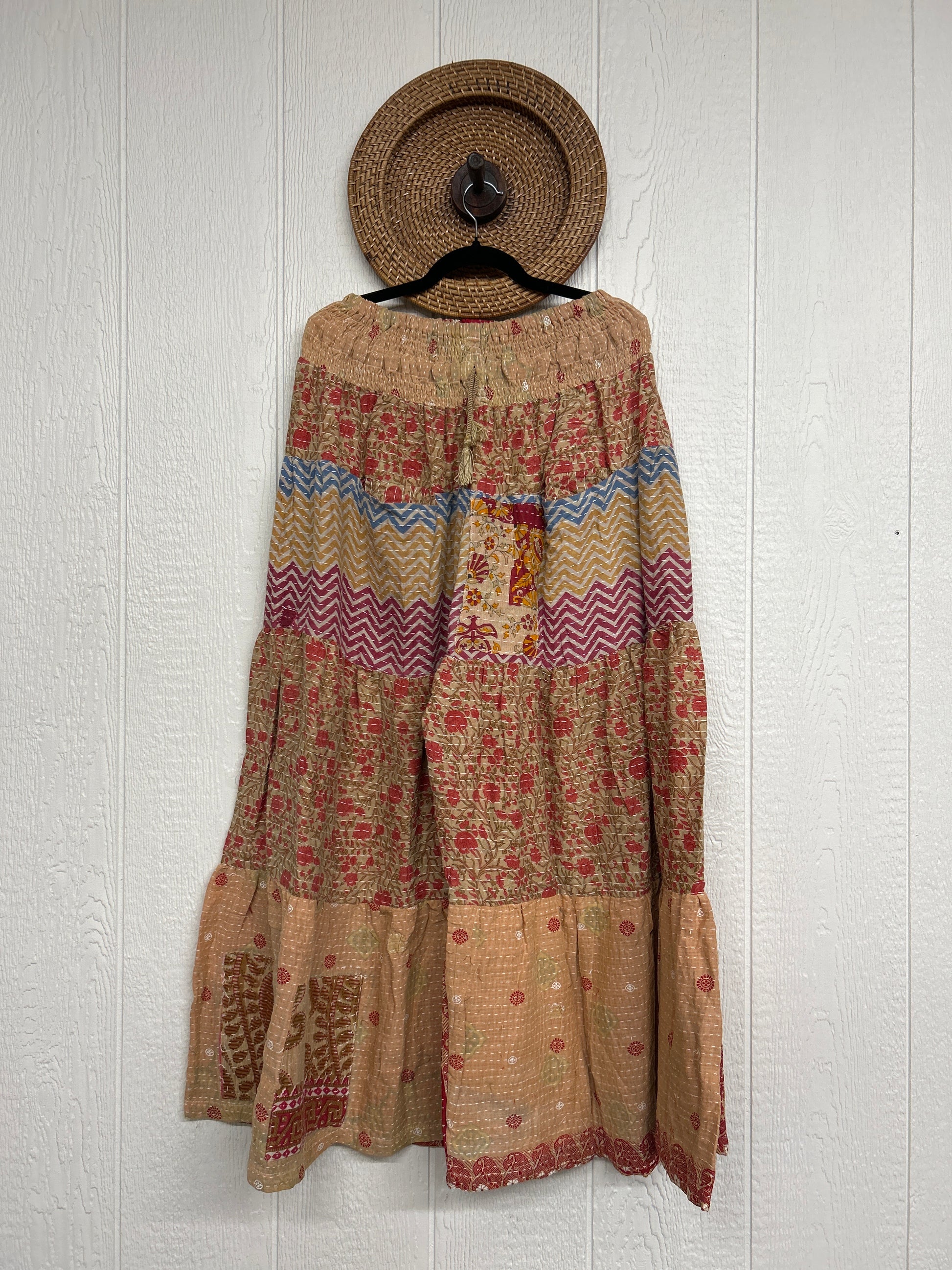 Crafted from our ultra lux Kantha stitched cotton sari, the bold design of the Lotus Wide Leg Pants features tiered wide legs for an exaggerated silhouette and a slouchy interior pocket that is absolute perfection!