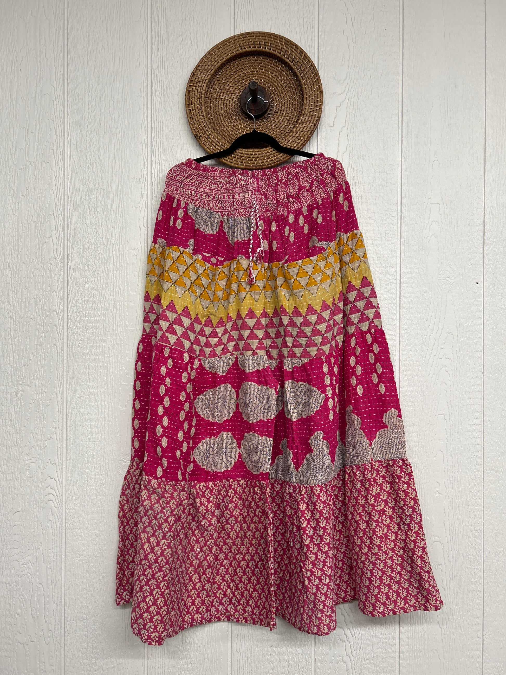 Crafted from our ultra lux Kantha stitched cotton sari, the bold design of the Lotus Wide Leg Pants features tiered wide legs for an exaggerated silhouette and a slouchy interior pocket that is absolute perfection!