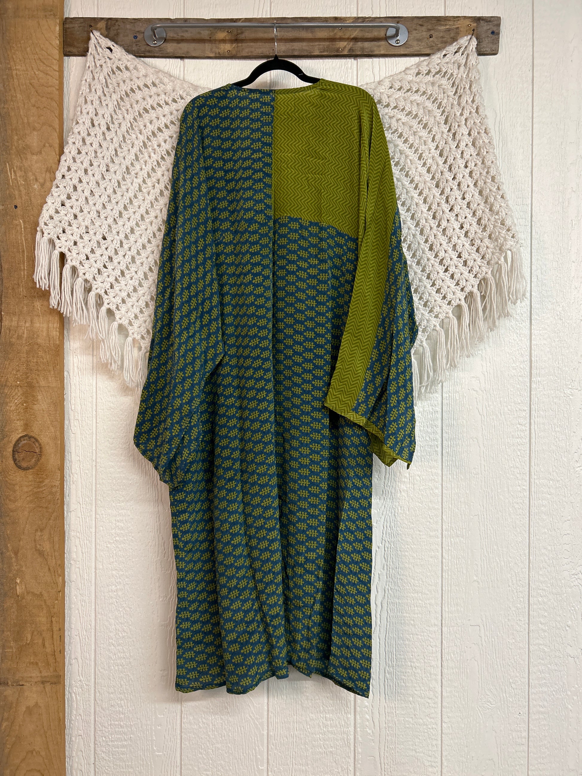 Fabrics may have small threads or holes in the layers. Color inconsistency or small stains may be present. The saris are sewn together and extend the life of each design.
