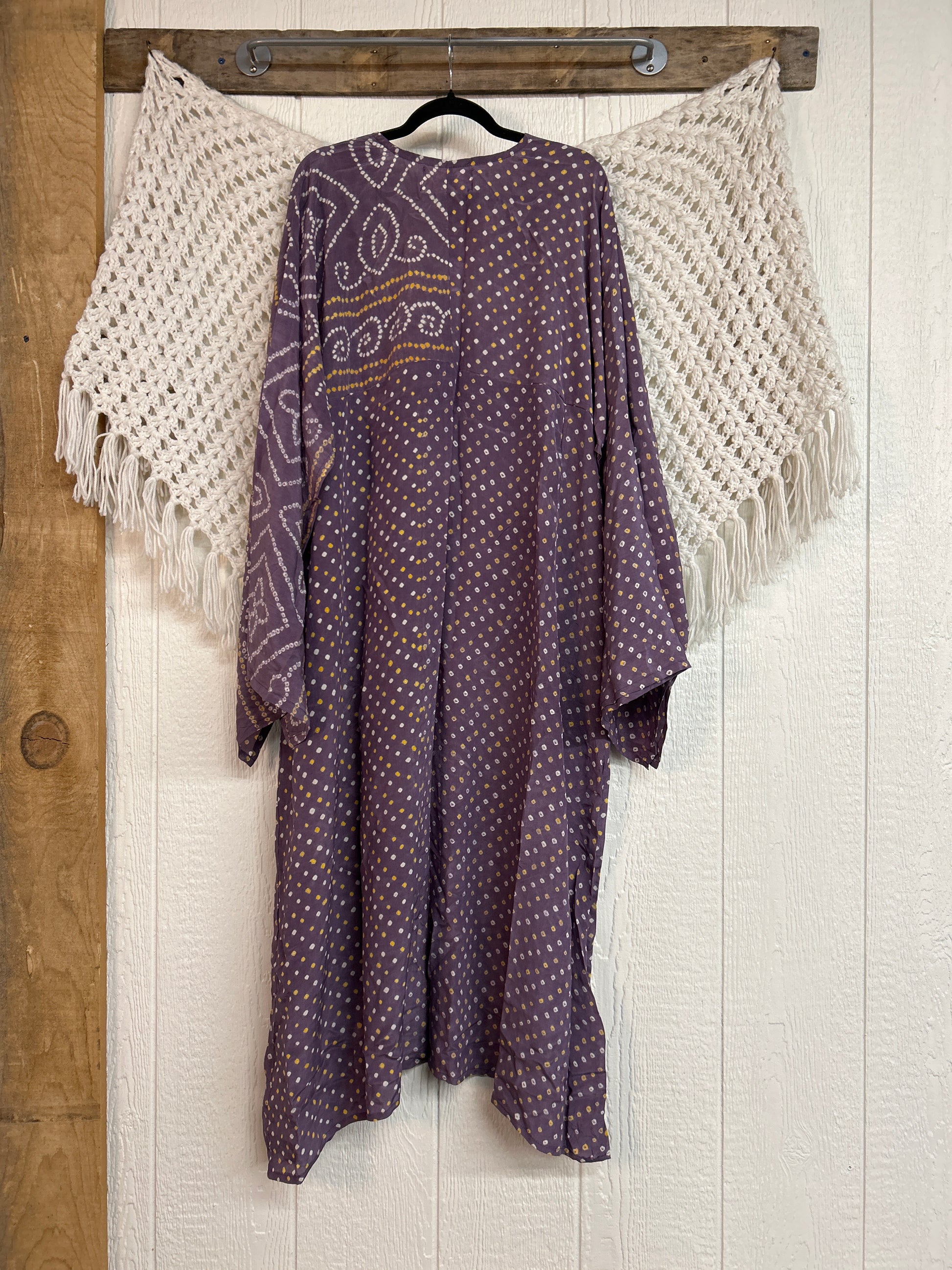 Crafted from our ultra lux vintage crepe sari this floaty dream features wide bell sleeves, deep v neckline, maxi silhouette with side slits for extra dimension.