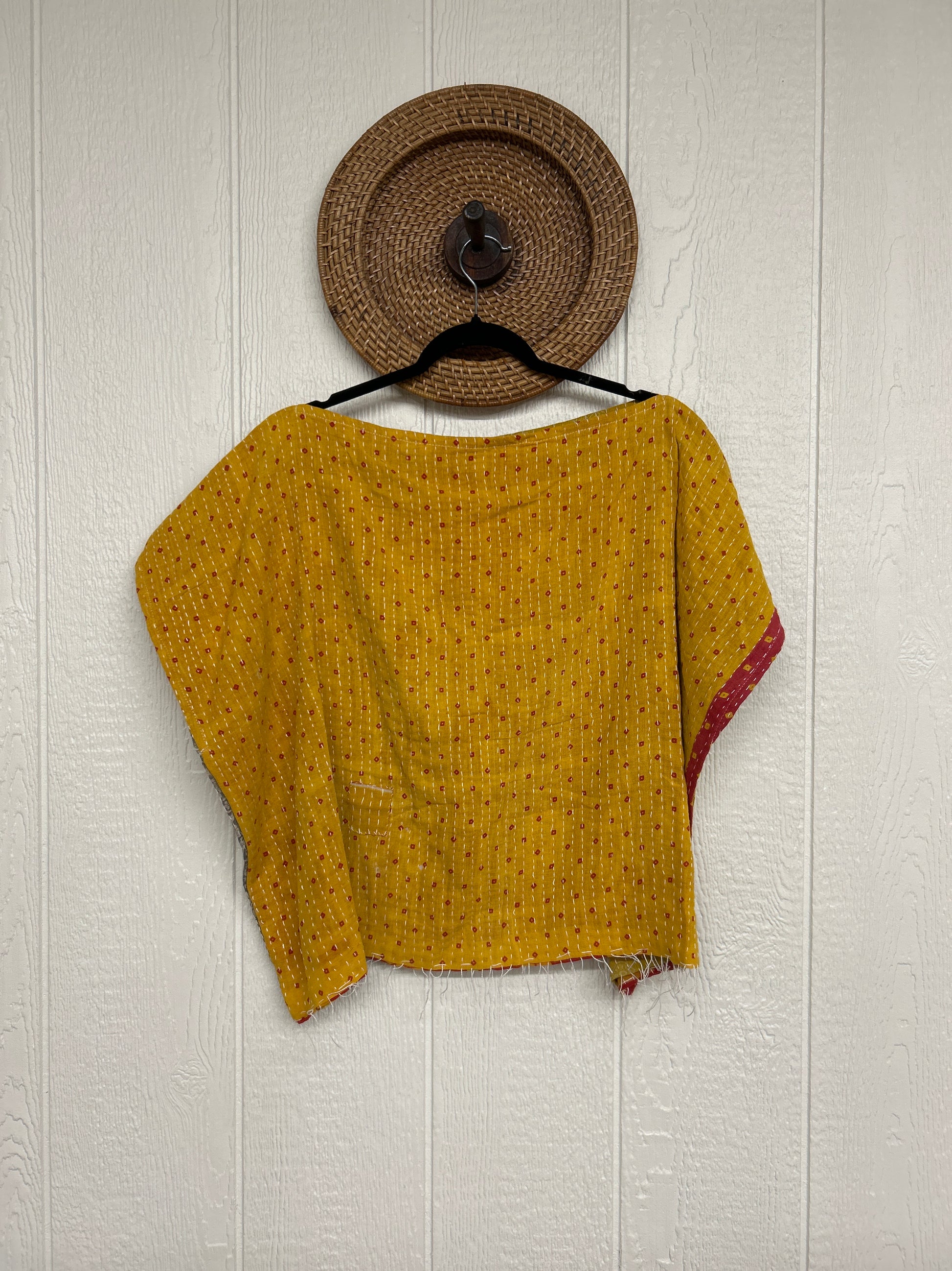Crafted from kantha stitched vintage cotton sari our OG Crop is slouchy perfection. Fully reversible PLUS you can wear it on ALL four sides. Features an unfinished fringe hem for extra vibes. We know the OG Crop will be your new go to!