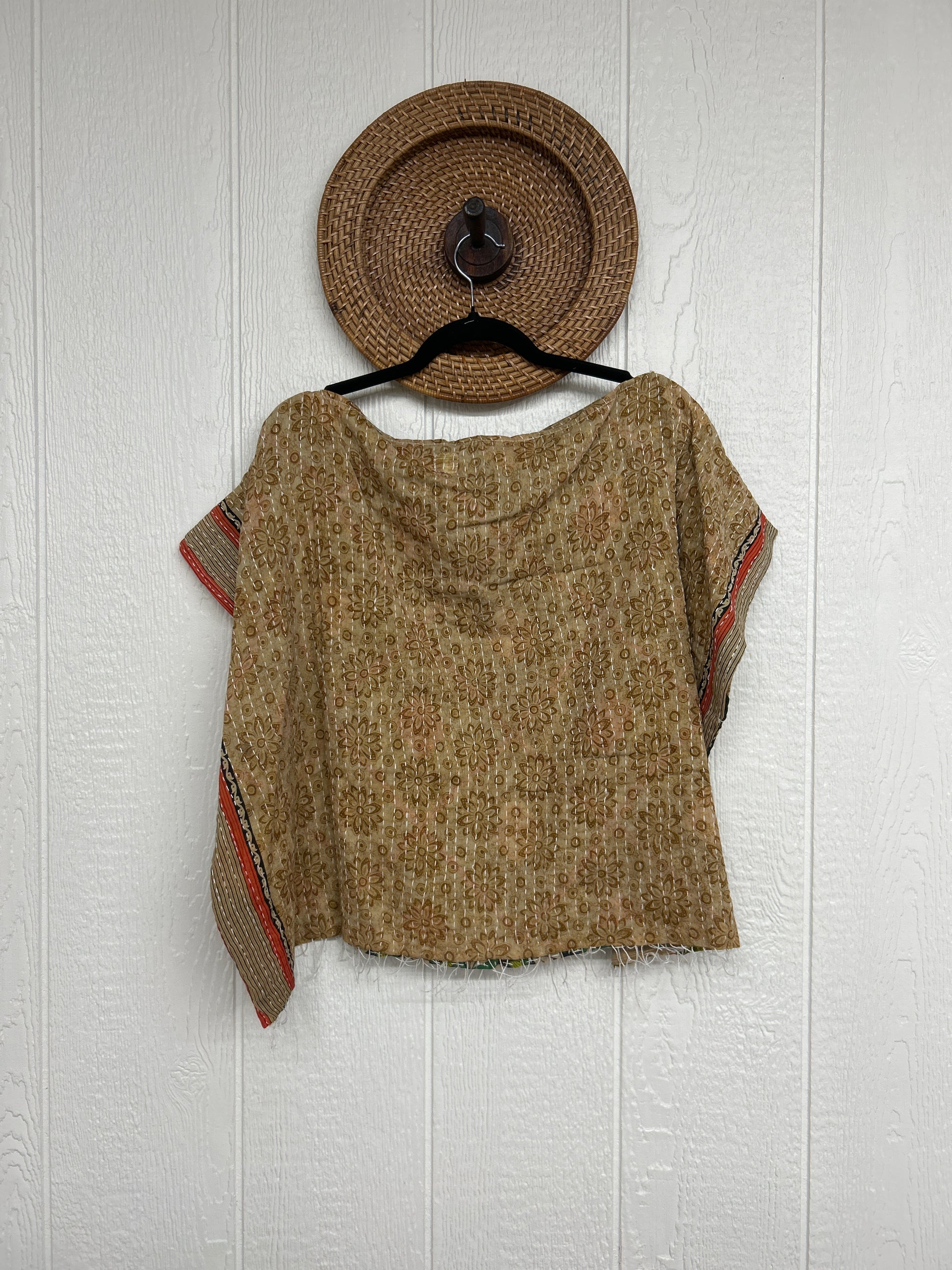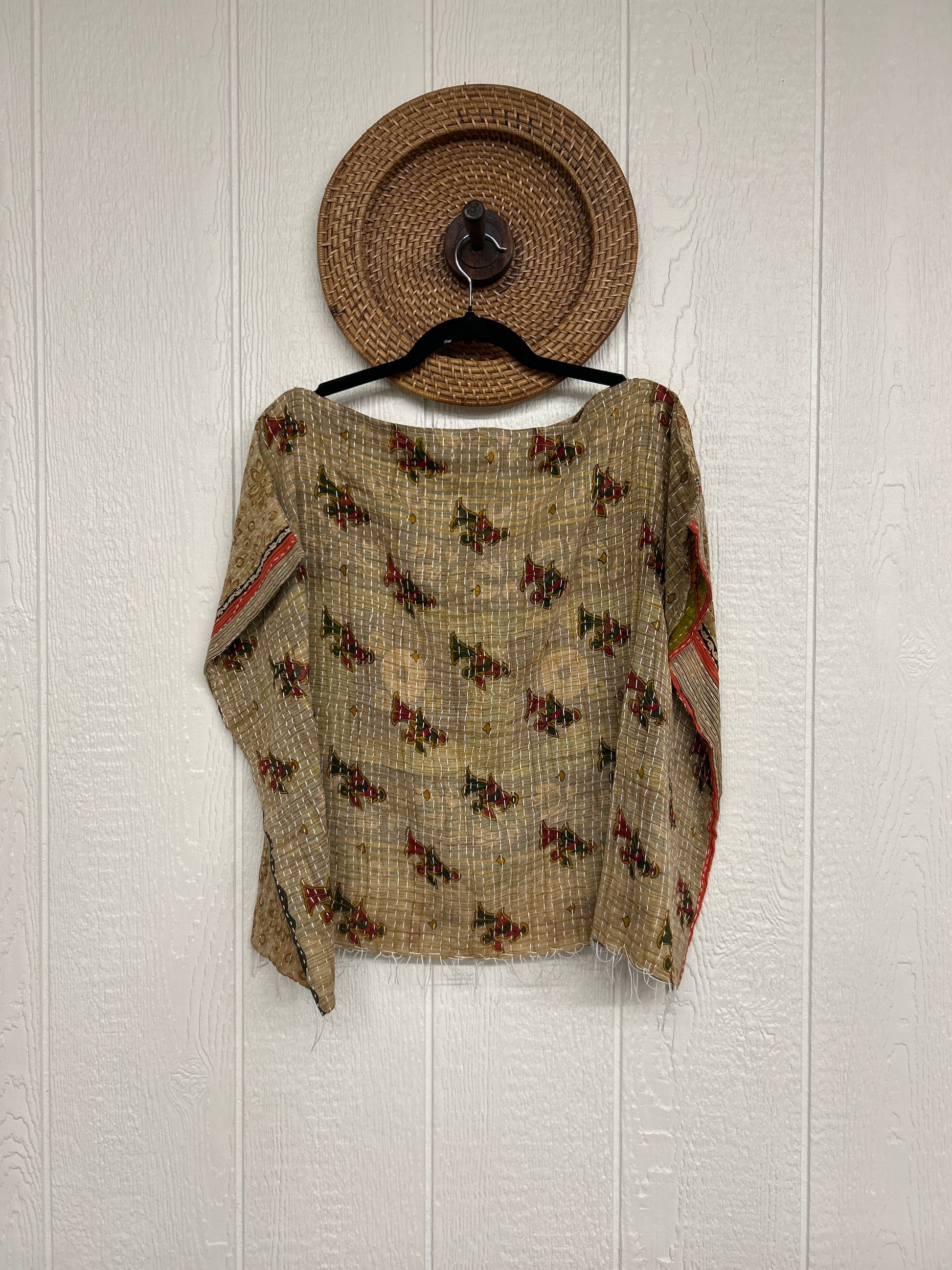 Crafted from kantha stitched vintage cotton sari our OG Crop is slouchy perfection. Fully reversible PLUS you can wear it on ALL four sides. Features an unfinished fringe hem for extra vibes. We know the OG Crop will be your new go to!