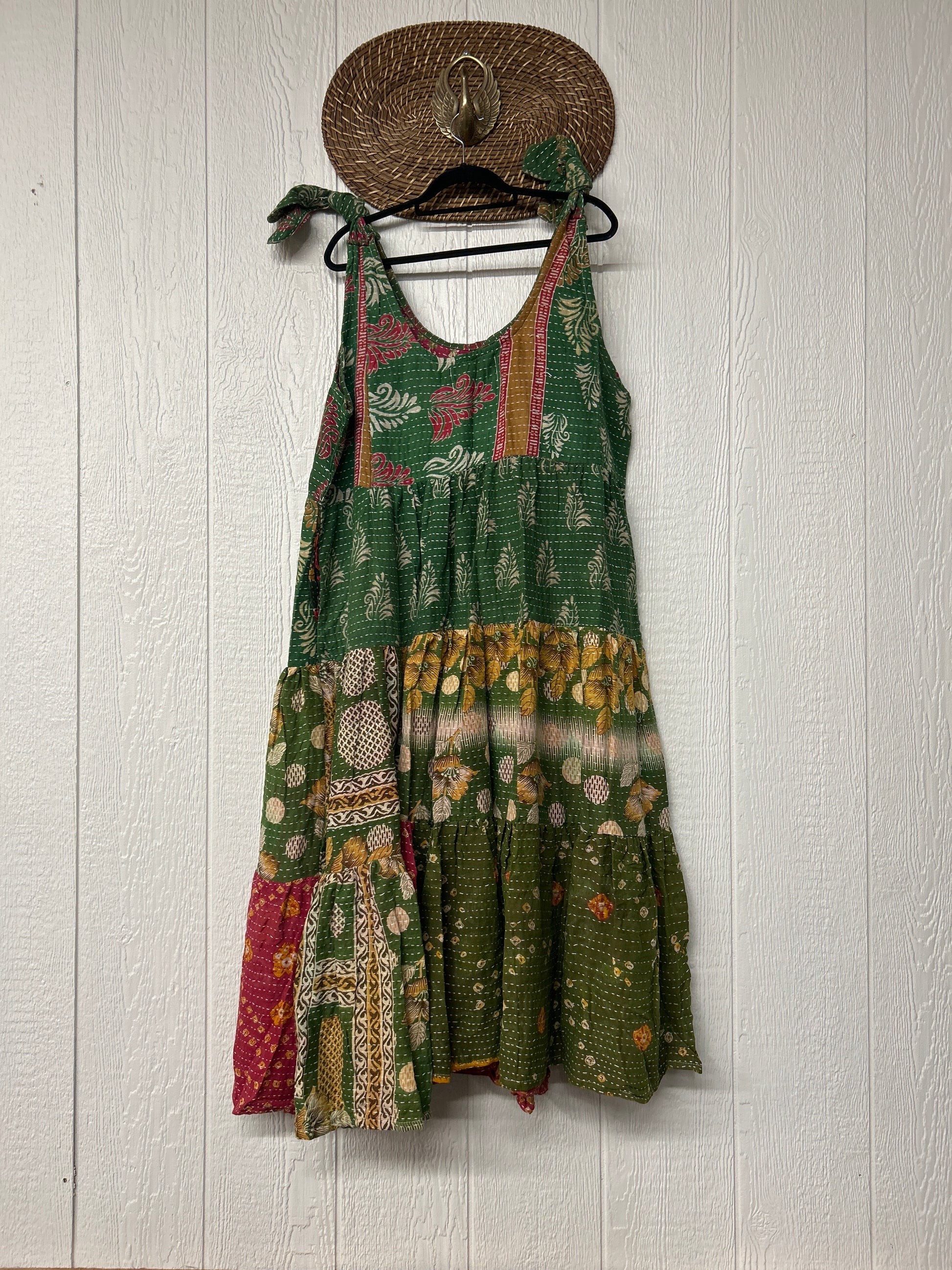 Fabrics may have small threads or holes in the layers. Color inconsistency or small stains may be present. The saris are sewn together and extend the life of each design. Imperfections should be celebrated.