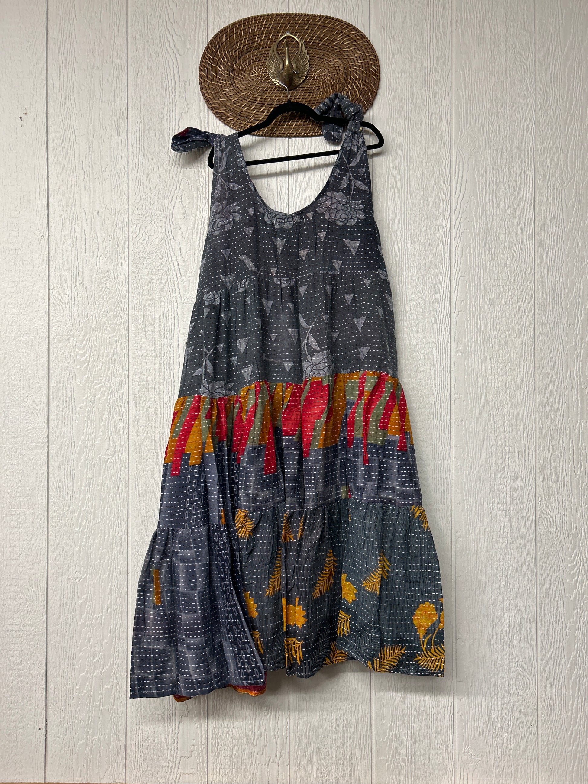 Fabrics may have small threads or holes in the layers. Color inconsistency or small stains may be present. The saris are sewn together and extend the life of each design. Imperfections should be celebrated.