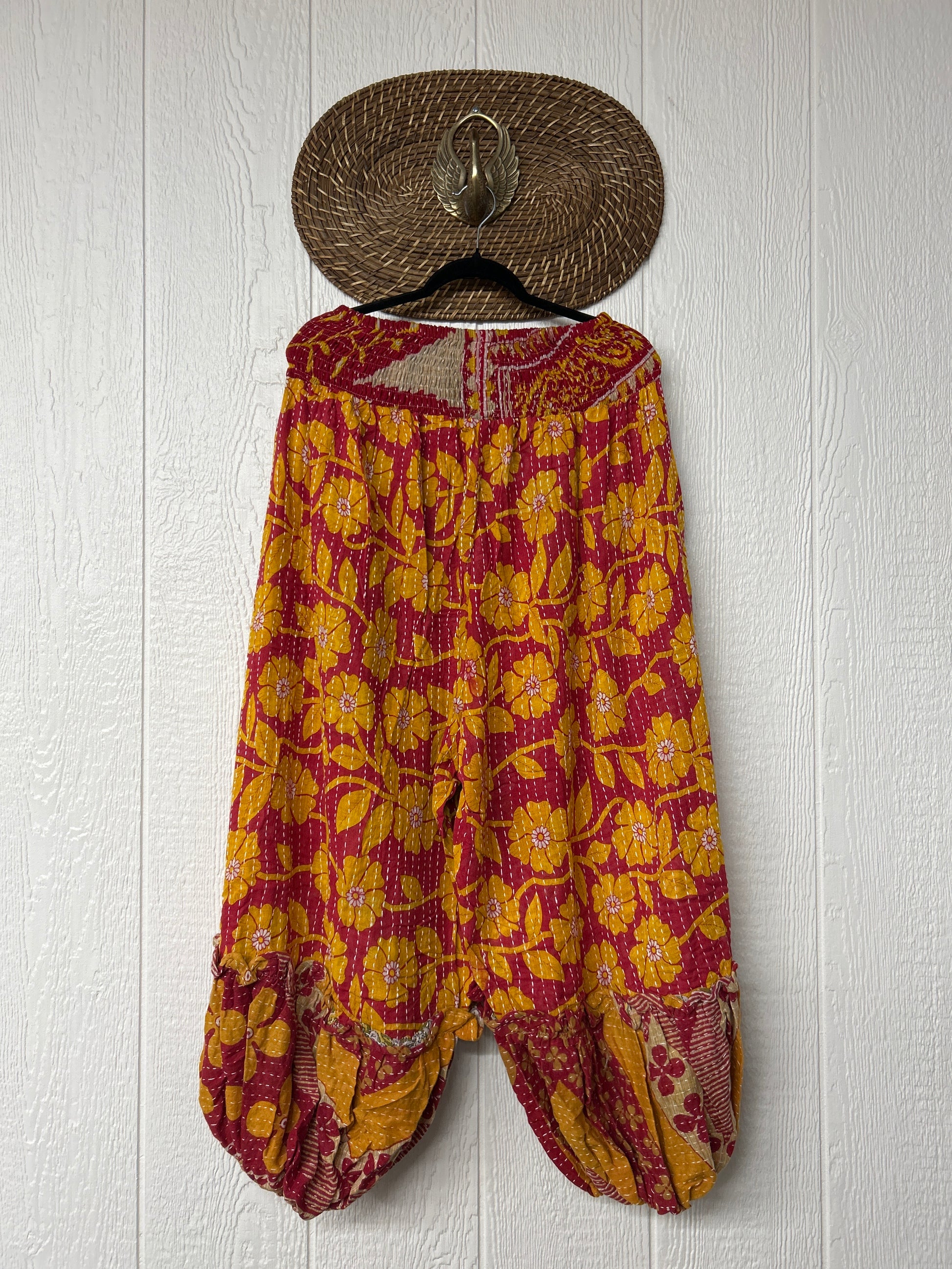 Crafted from our ultra lux kantha stitched vintage cotton sari these pants feature exterior slouchy pockets, a stretchy waistband and an elastic ankle opening. Dress these dream pants up or down to become the ultimate vibe!