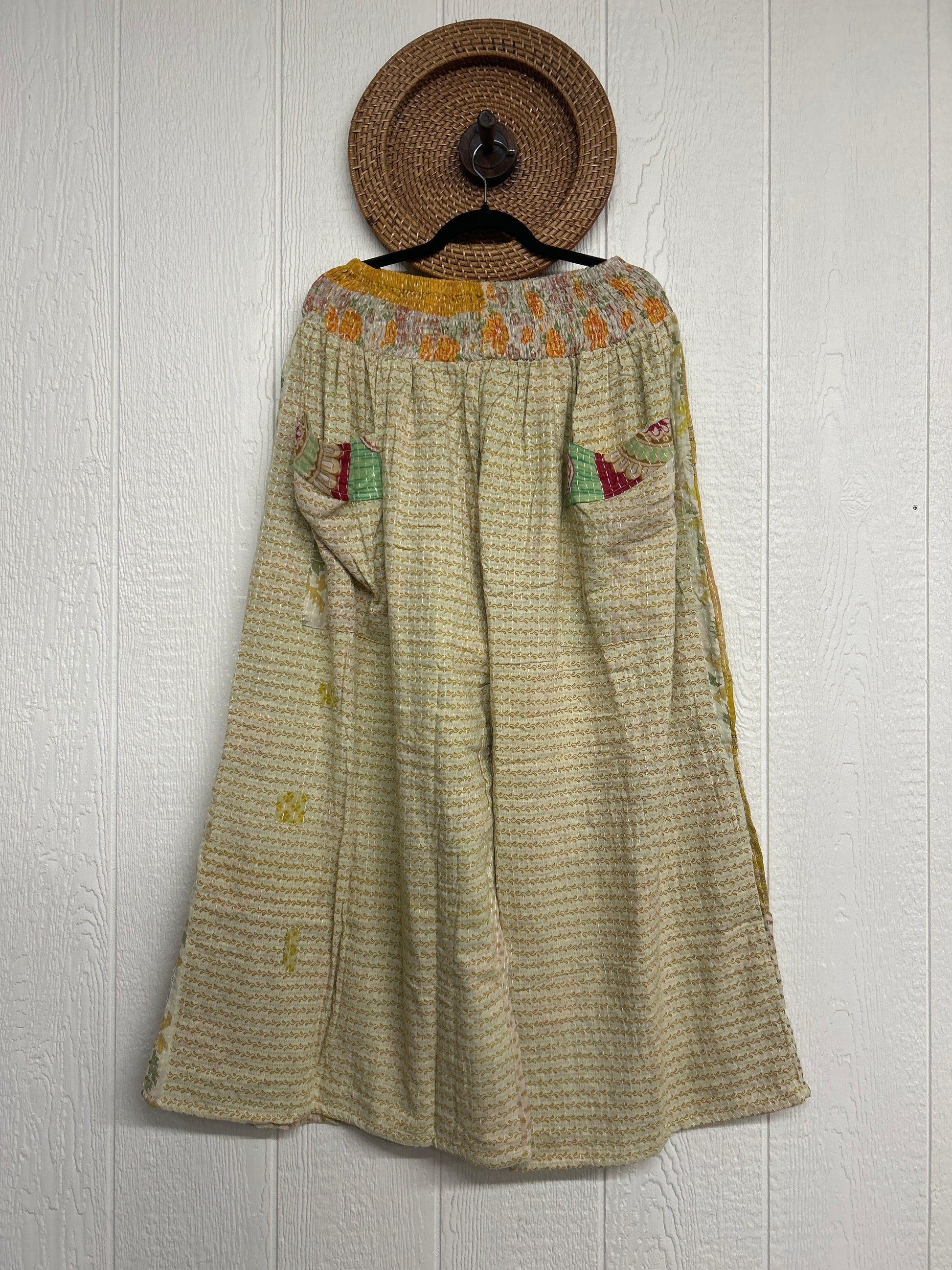 These dream pants feature a smocked waistband that is stretchy and soft against your skin. It is pure magic that they can be worn by people of all different sizes and we fit these with so much love and intention to do so.