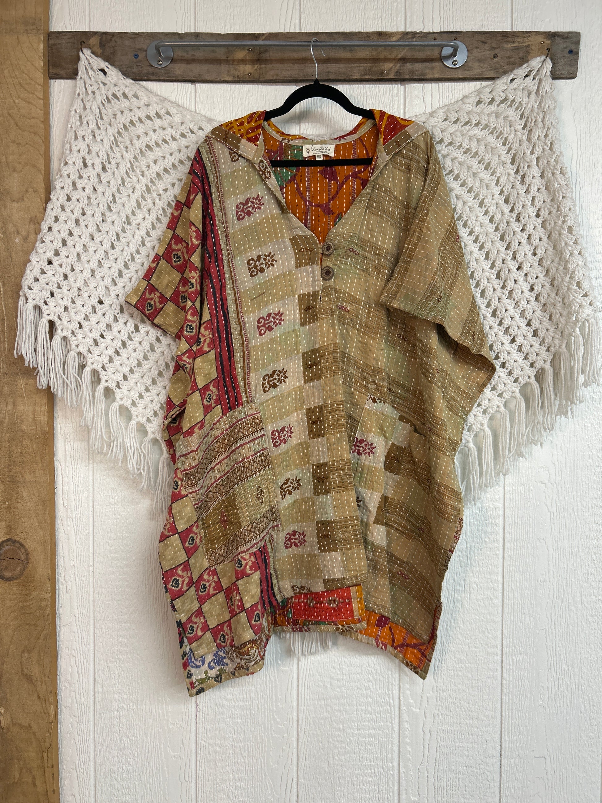 Disclosure: Kantha embroidered saris are vintage and have lived a full life before becoming the designs in our shop. Fabrics may have small threads or holes in the layers. The saris are sewn together and extend the life of each design. Color inconsistency or small stains may be present.