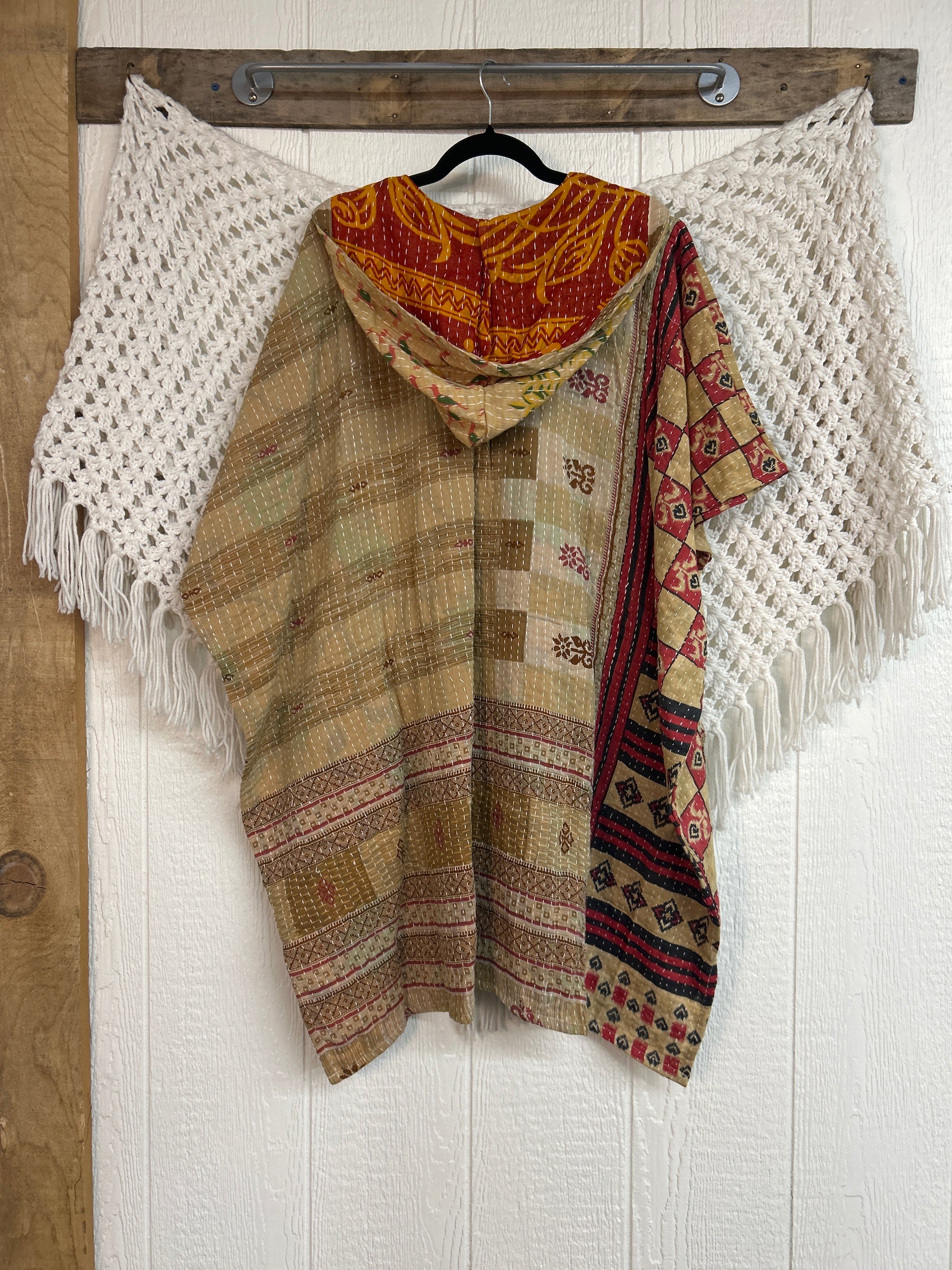 Crafted from our pareo kantha stitched cotton sari this dream peace features a hood, two buttons, two slouchy big pockets and side slits for extra dimension. A timeless transitional piece that will transform any outfit into a lux hippie moment!