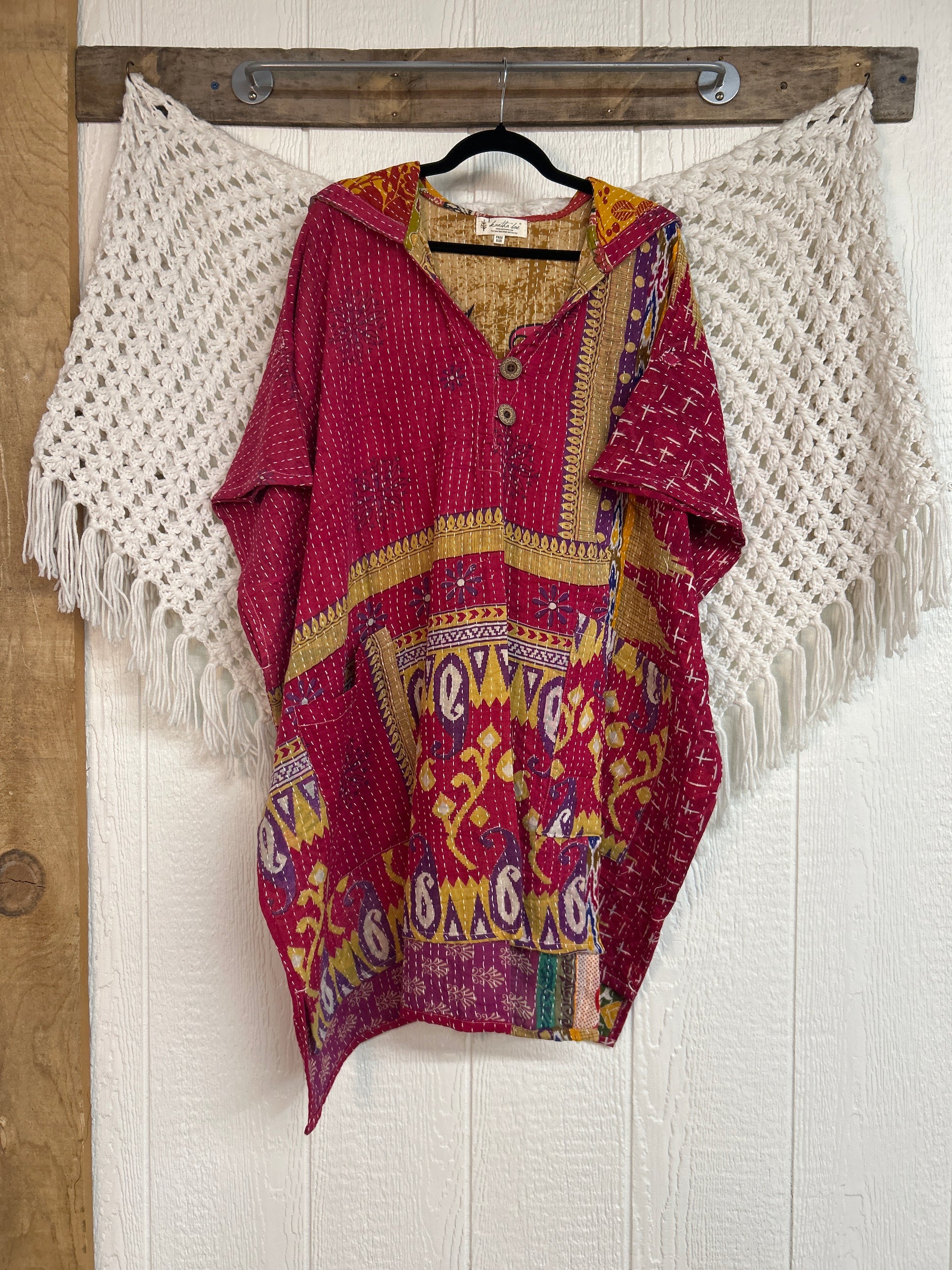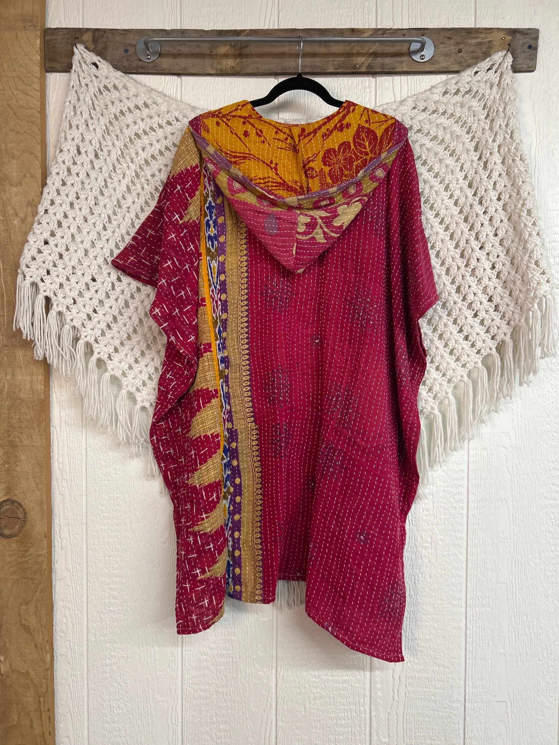 Crafted from our pareo kantha stitched cotton sari this dream peace features a hood, two buttons, two slouchy big pockets and side slits for extra dimension. A timeless transitional piece that will transform any outfit into a lux hippie moment!