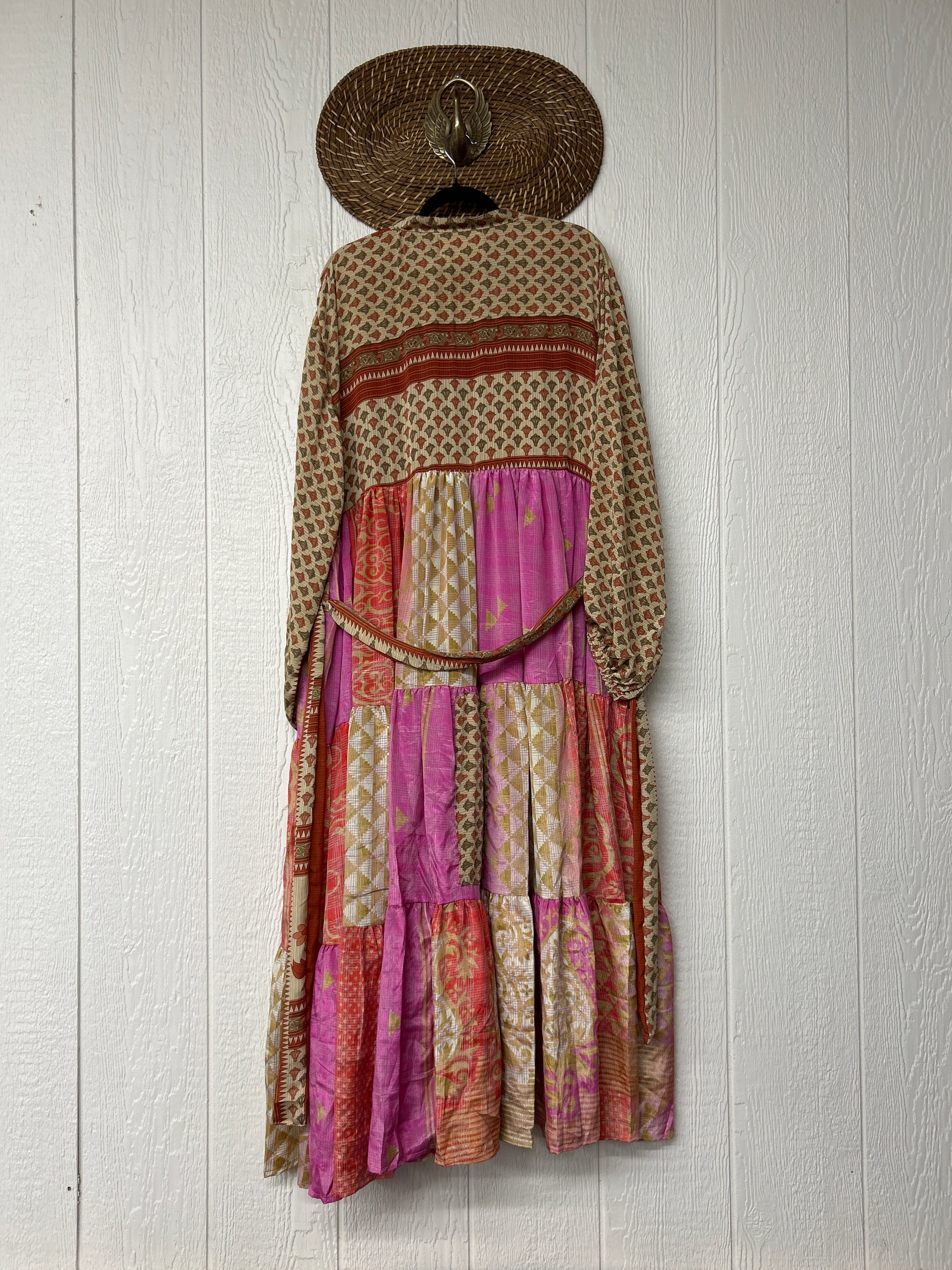 Disclosure: Our vintage styles have lived a full life before becoming the designs in our shop. Fabrics may have small threads or holes in the layers. Color inconsistency or small stains may be present. The saris are sewn together and extend the life of each design.