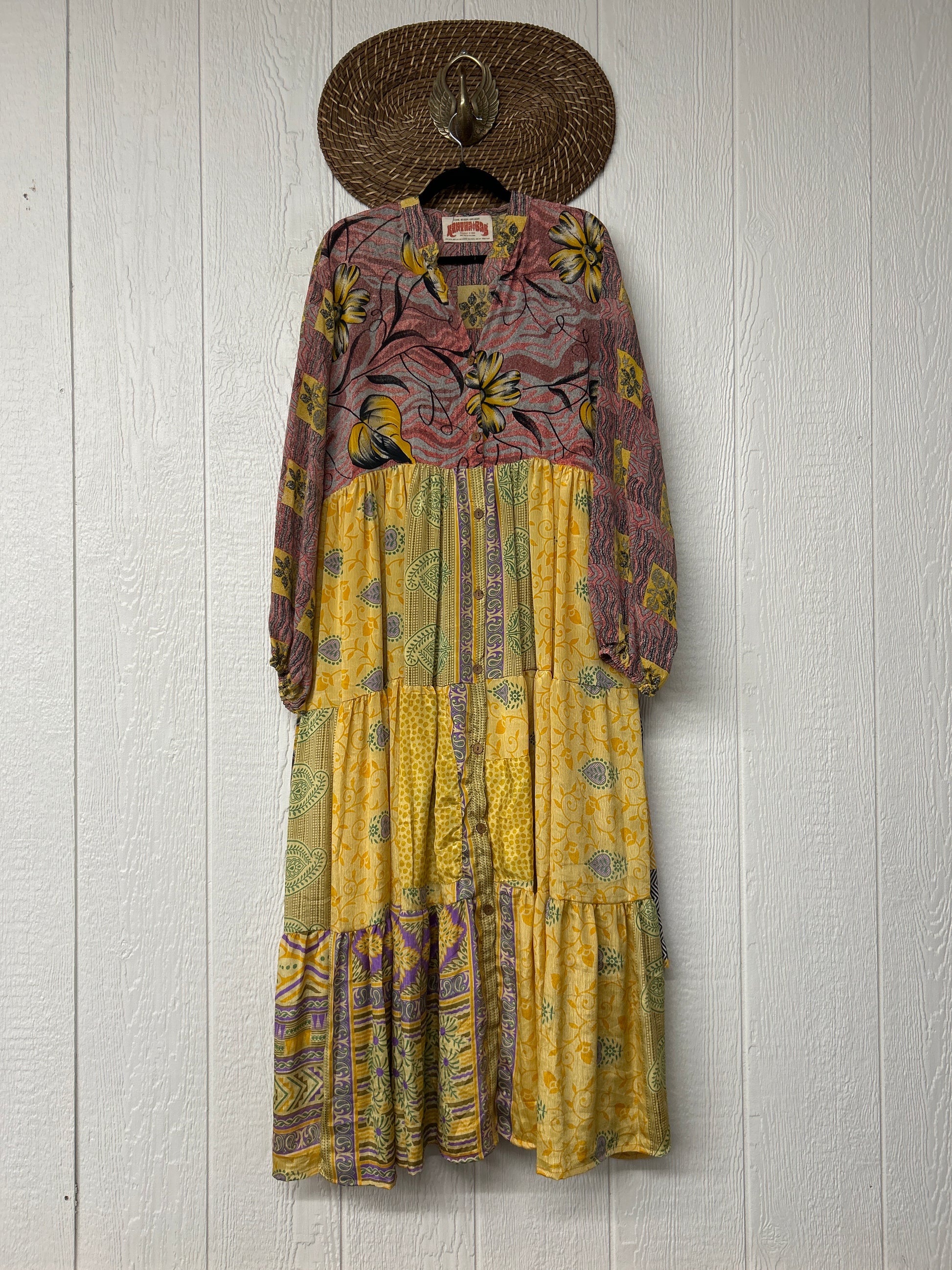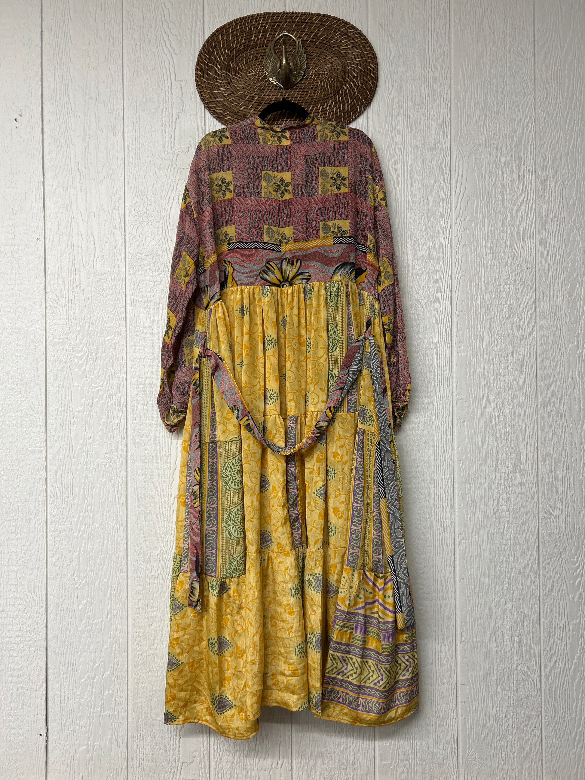 Disclosure: Our vintage styles have lived a full life before becoming the designs in our shop. Fabrics may have small threads or holes in the layers. Color inconsistency or small stains may be present. The saris are sewn together and extend the life of each design.