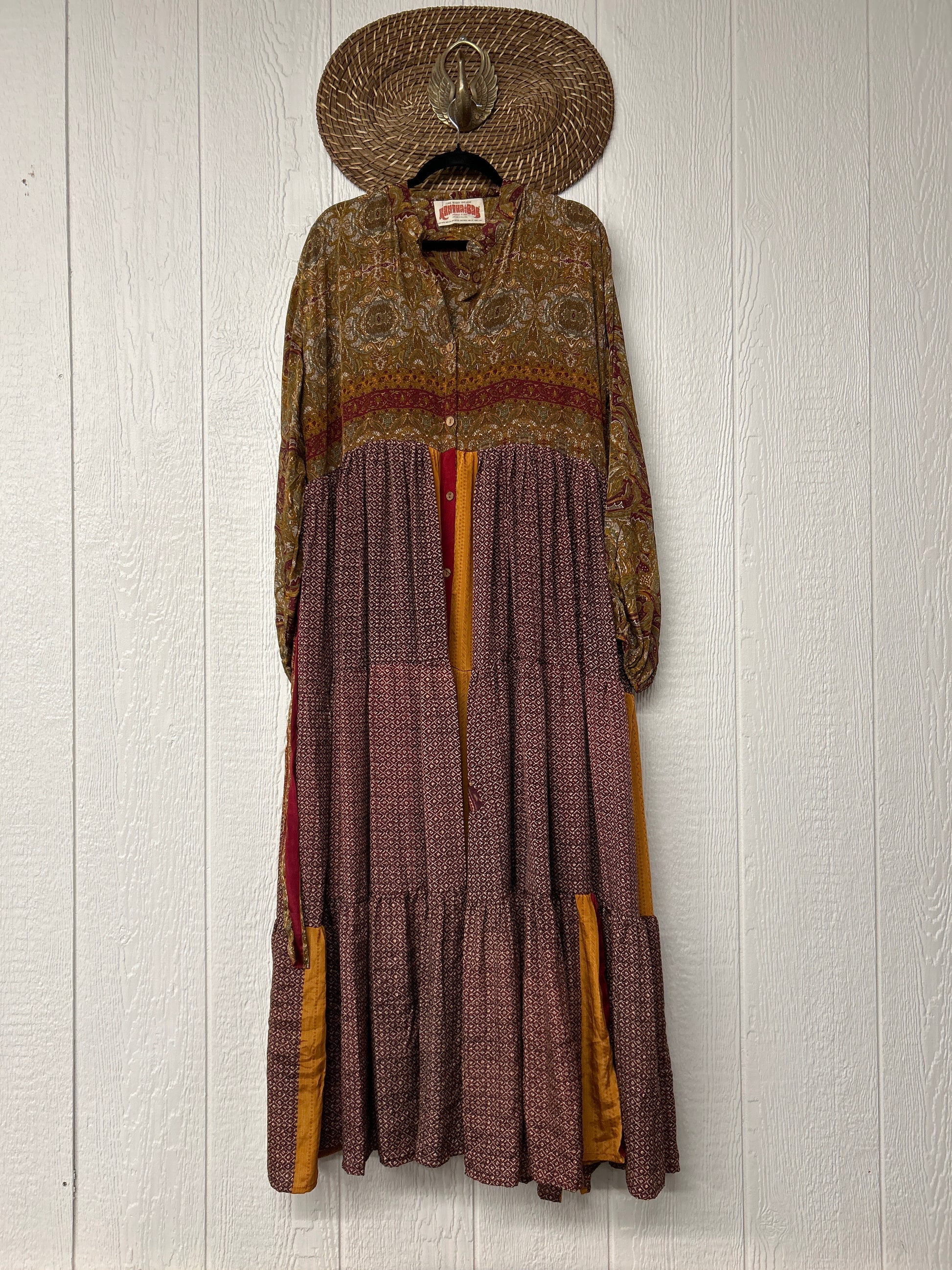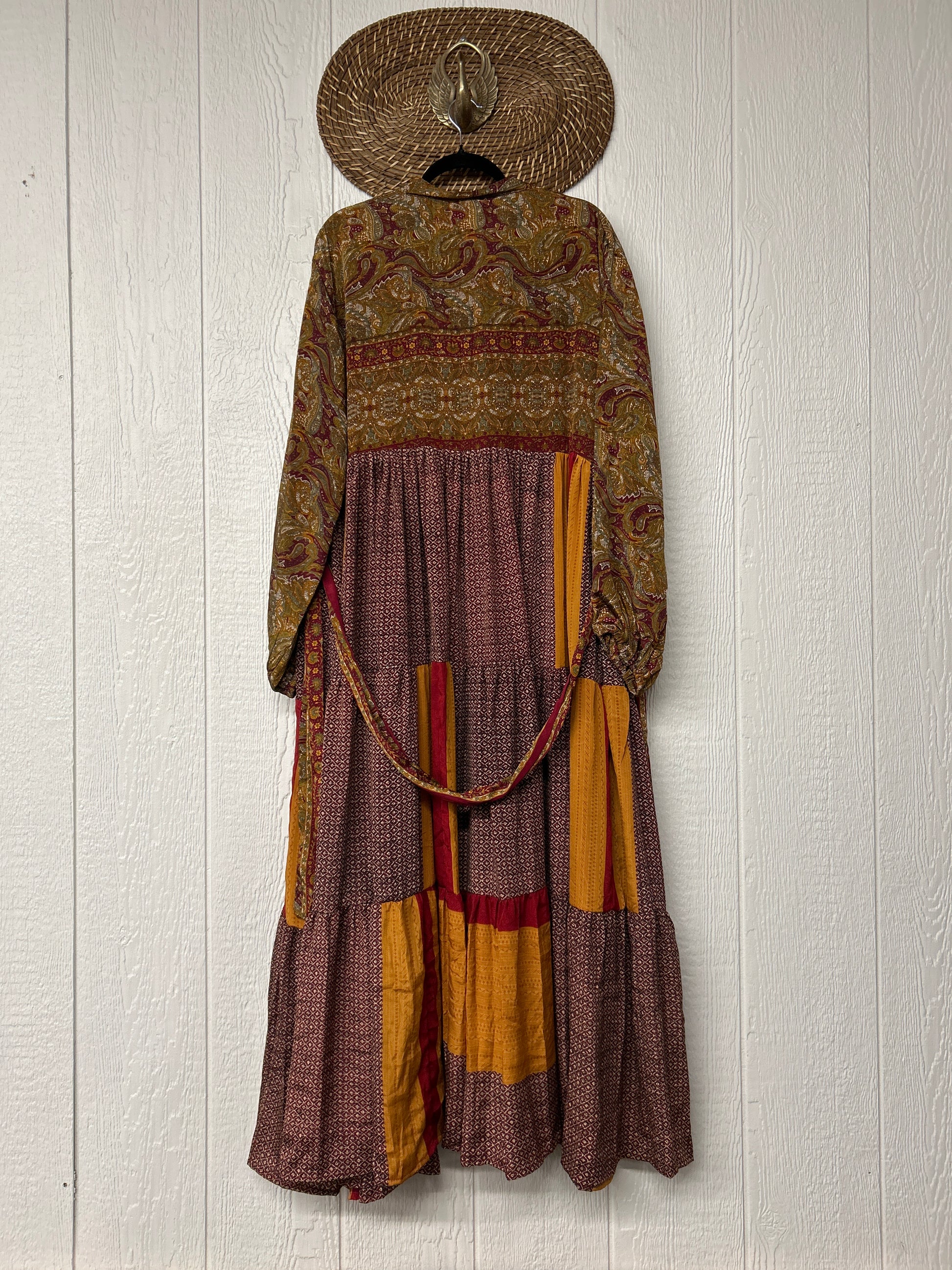Disclosure: Our vintage styles have lived a full life before becoming the designs in our shop. Fabrics may have small threads or holes in the layers. Color inconsistency or small stains may be present. The saris are sewn together and extend the life of each design.