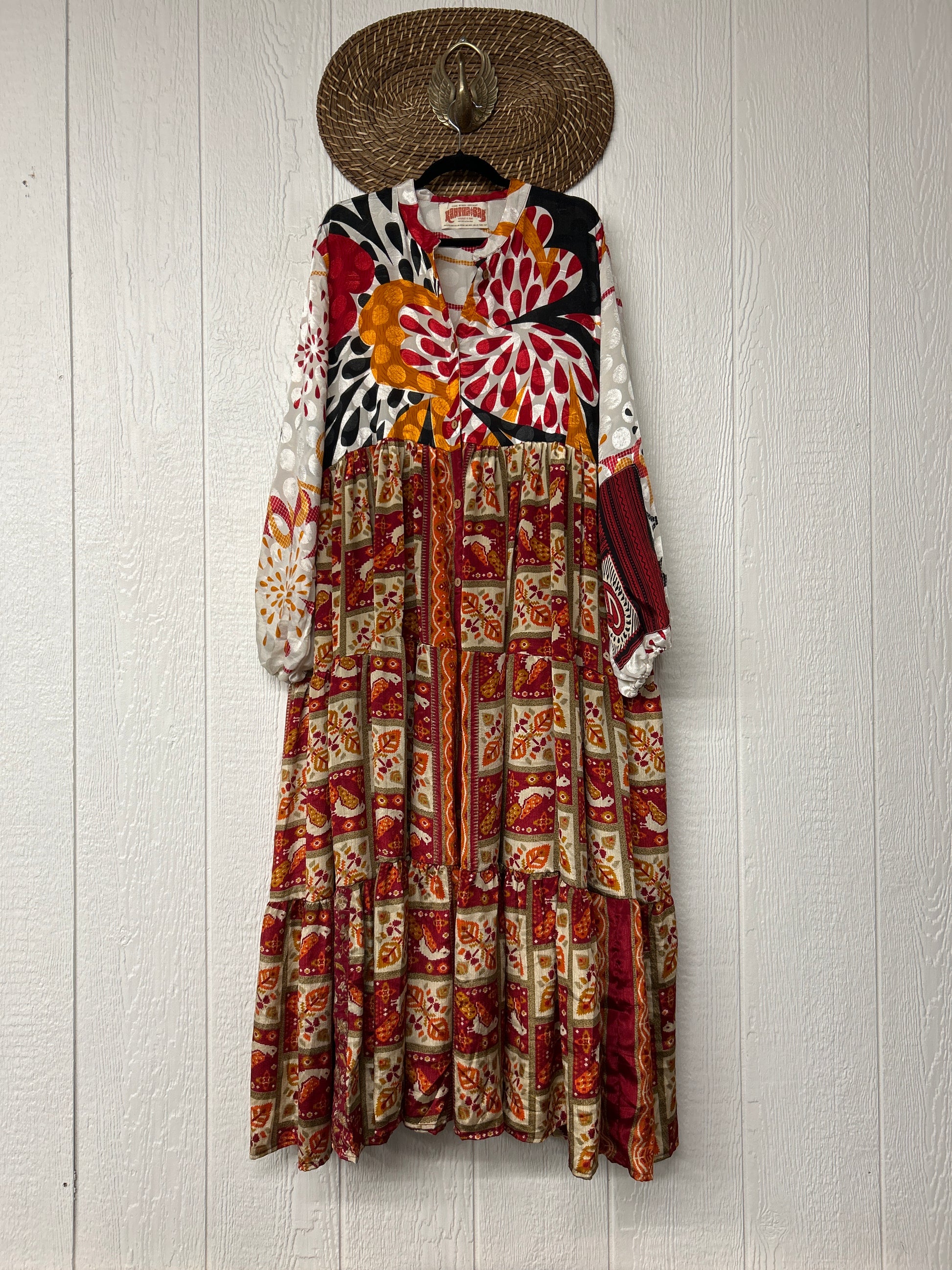 Disclosure: Our vintage styles have lived a full life before becoming the designs in our shop. Fabrics may have small threads or holes in the layers. Color inconsistency or small stains may be present. The saris are sewn together and extend the life of each design.