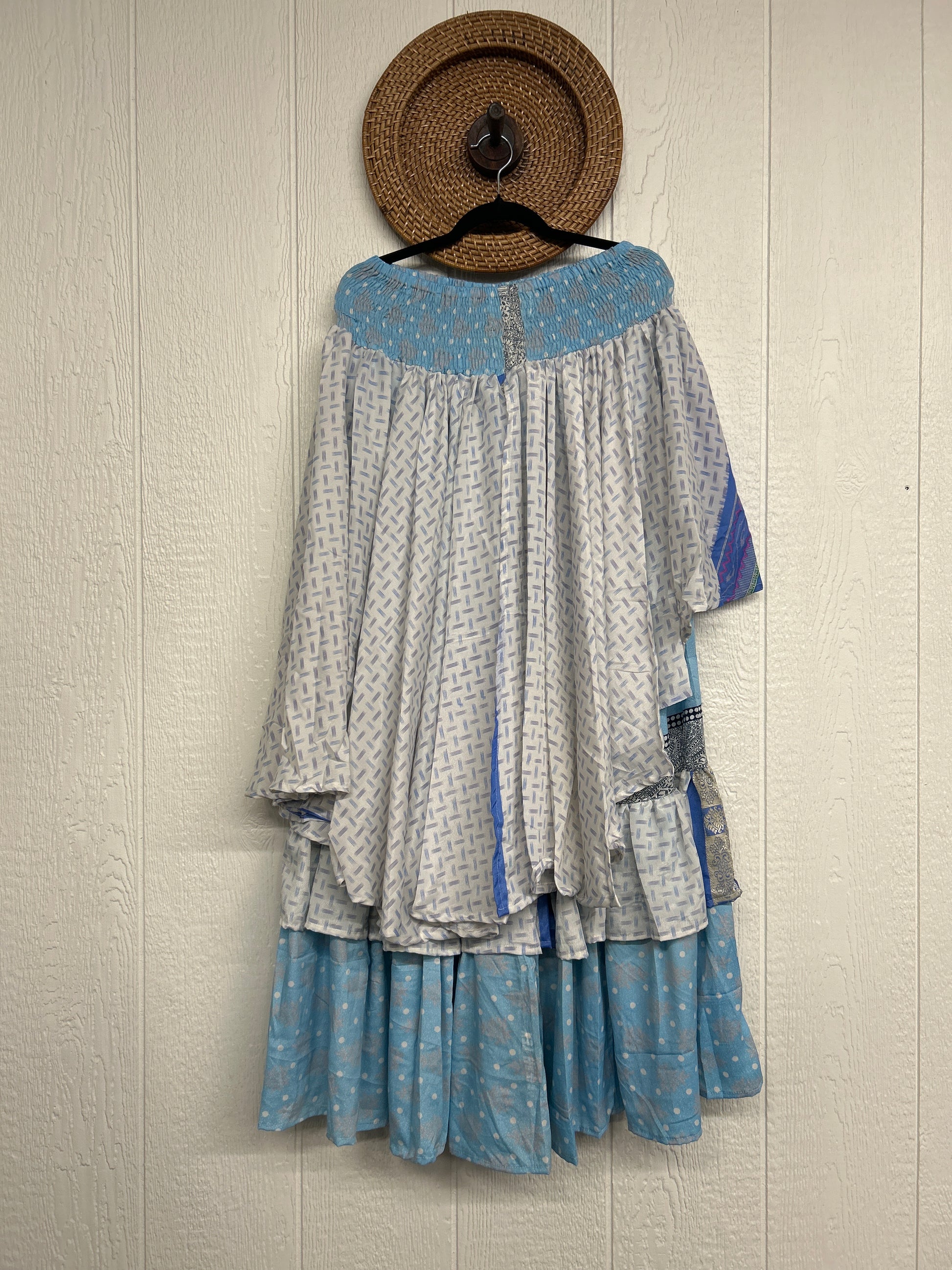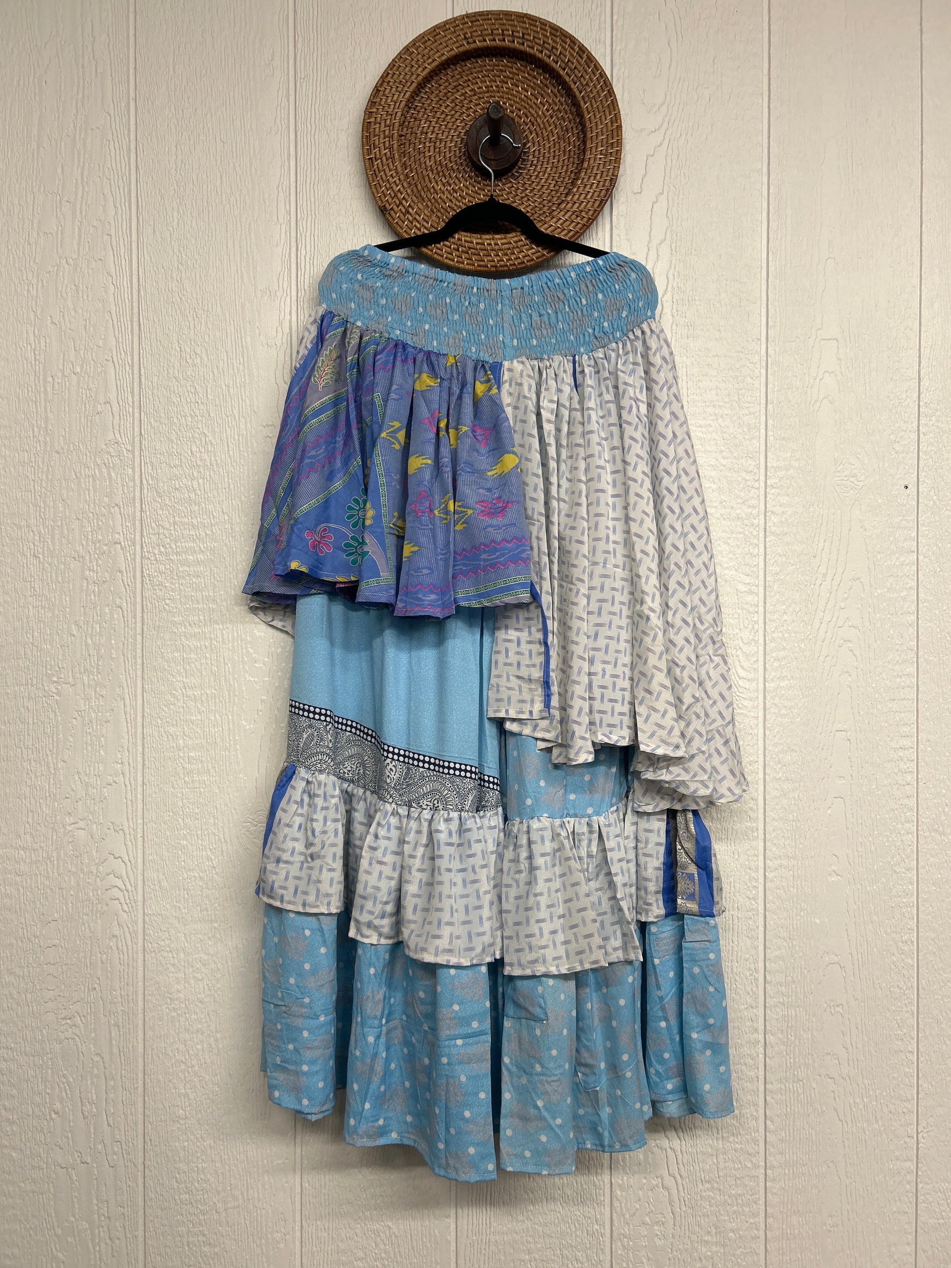 Crafted from vintage rasgulla sari these ethereal pants features stretchy waist, super wide legs, double tier hem and a skirt layer. these pants will make you want to dance! One size, recommended up to size 22/24 Crafted and sewn by families in a small village in Northern India providing work and a fair living. This product should be hand washed and line dried for longest life. For softness, fluff in the dryer on low heat after it has dried from hand washing. Disclosure: Our vintage styles have lived a full life before becoming the designs in our shop. Fabrics may have small threads or holes in the layers. Color inconsistency or small stains may be present. The saris are sewn together and extend the life of each design. Imperfections should be celebrated.