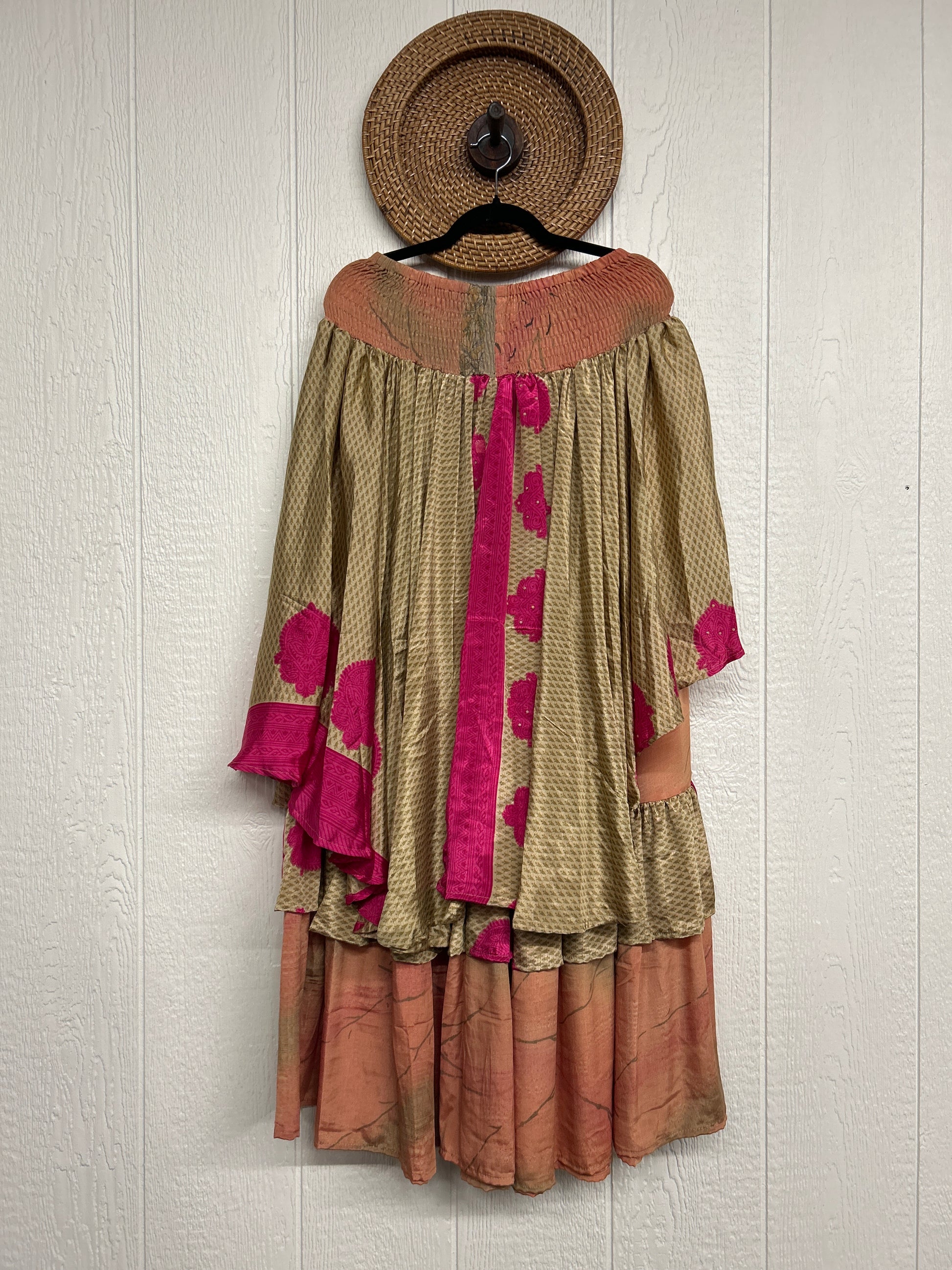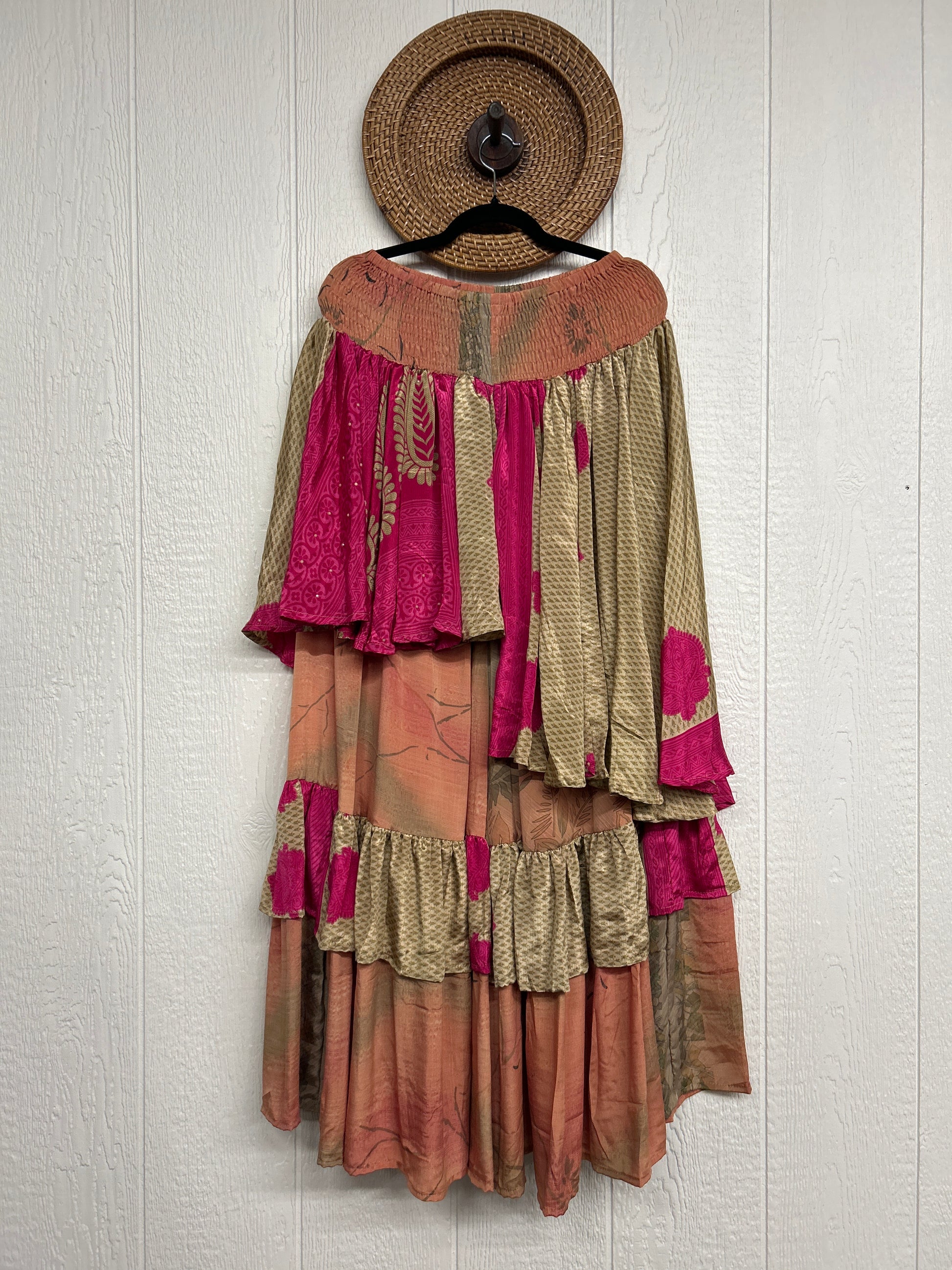 Crafted from vintage rasgulla sari these ethereal pants features stretchy waist, super wide legs, double tier hem and a skirt layer. these pants will make you want to dance! One size, recommended up to size 22/24 Crafted and sewn by families in a small village in Northern India providing work and a fair living. This product should be hand washed and line dried for longest life. For softness, fluff in the dryer on low heat after it has dried from hand washing. Disclosure: Our vintage styles have lived a full life before becoming the designs in our shop. Fabrics may have small threads or holes in the layers. Color inconsistency or small stains may be present. The saris are sewn together and extend the life of each design. Imperfections should be celebrated.