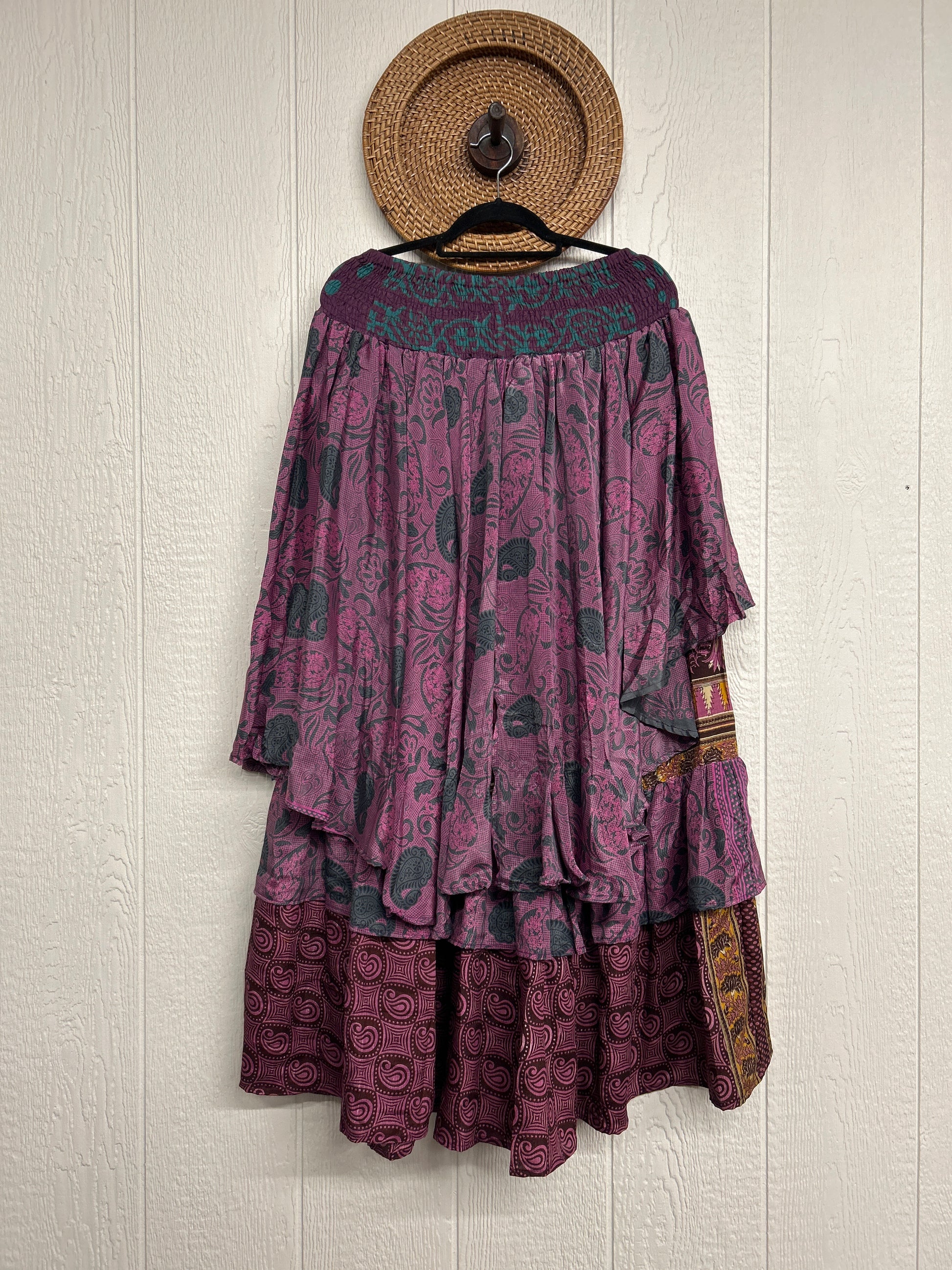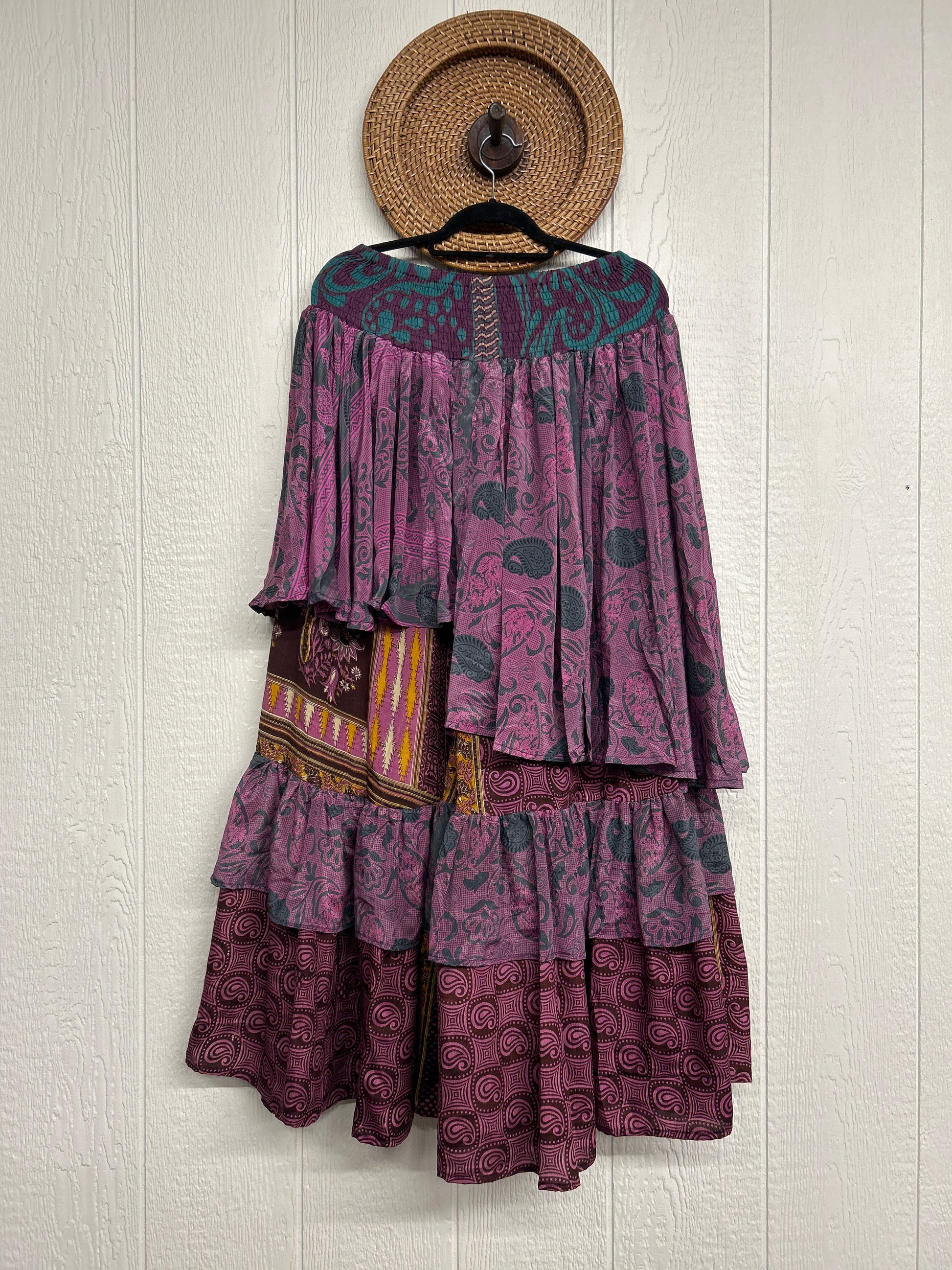 Crafted from vintage rasgulla sari these ethereal pants features stretchy waist, super wide legs, double tier hem and a skirt layer. these pants will make you want to dance! One size, recommended up to size 22/24 Crafted and sewn by families in a small village in Northern India providing work and a fair living. This product should be hand washed and line dried for longest life. For softness, fluff in the dryer on low heat after it has dried from hand washing. Disclosure: Our vintage styles have lived a full life before becoming the designs in our shop. Fabrics may have small threads or holes in the layers. Color inconsistency or small stains may be present. The saris are sewn together and extend the life of each design. Imperfections should be celebrated.