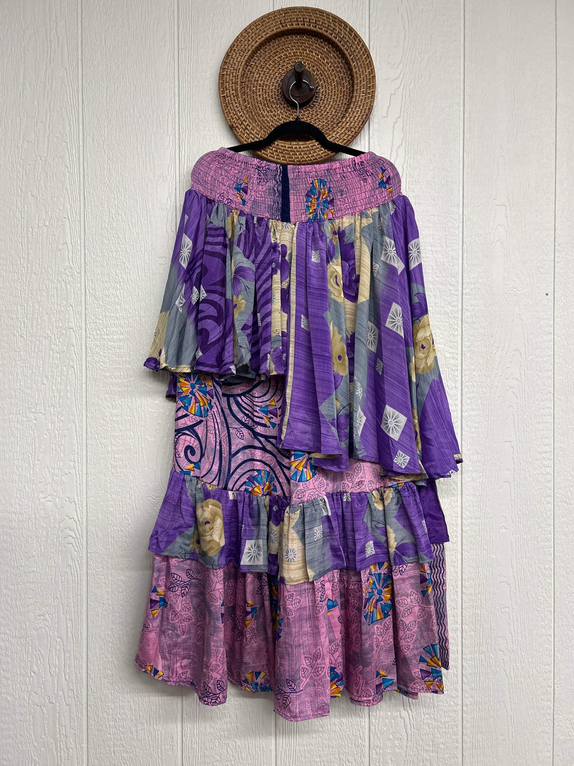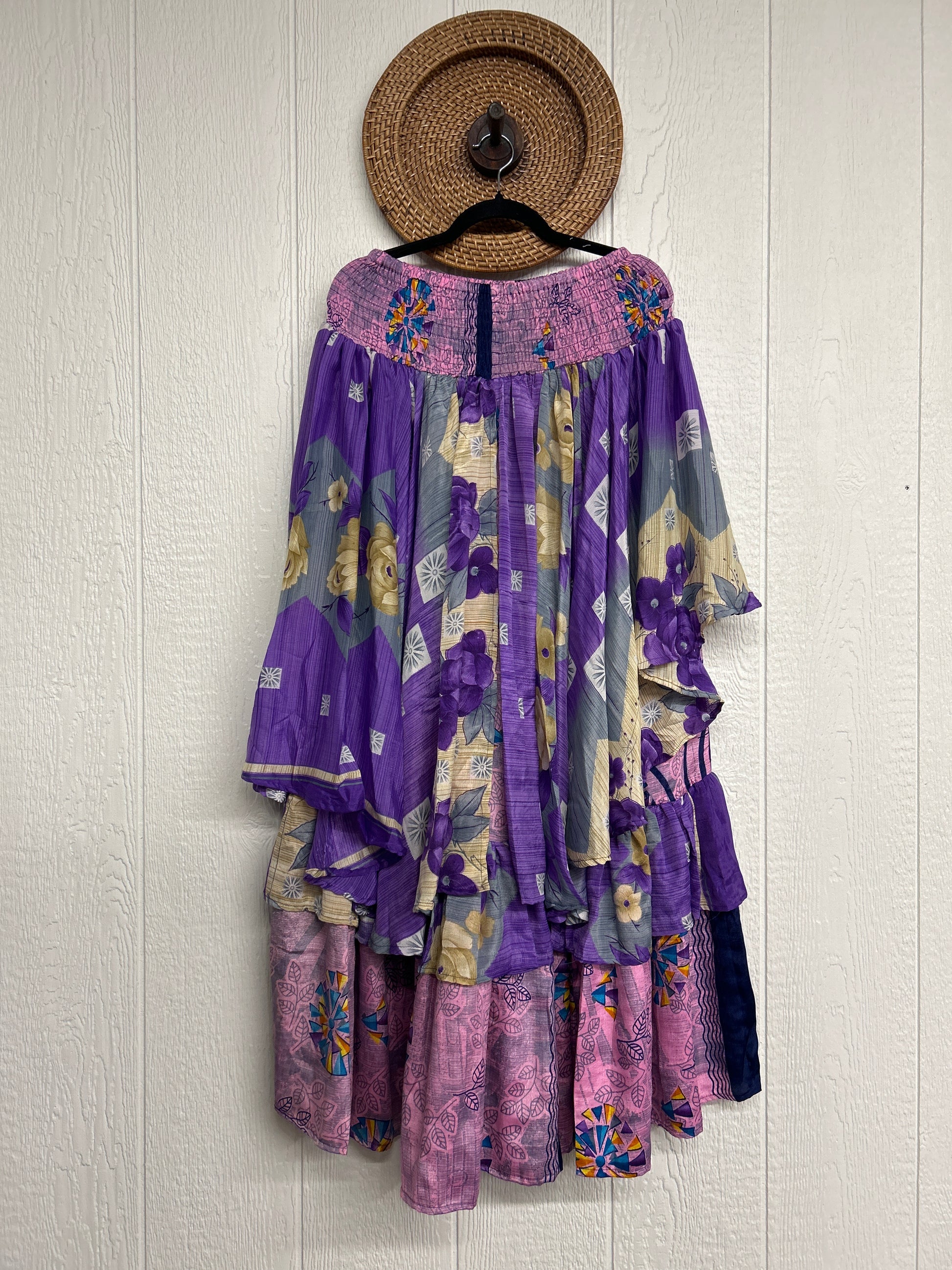 Crafted from vintage rasgulla sari these ethereal pants features stretchy waist, super wide legs, double tier hem and a skirt layer. these pants will make you want to dance! One size, recommended up to size 22/24 Crafted and sewn by families in a small village in Northern India providing work and a fair living. This product should be hand washed and line dried for longest life. For softness, fluff in the dryer on low heat after it has dried from hand washing. Disclosure: Our vintage styles have lived a full life before becoming the designs in our shop. Fabrics may have small threads or holes in the layers. Color inconsistency or small stains may be present. The saris are sewn together and extend the life of each design. Imperfections should be celebrated.