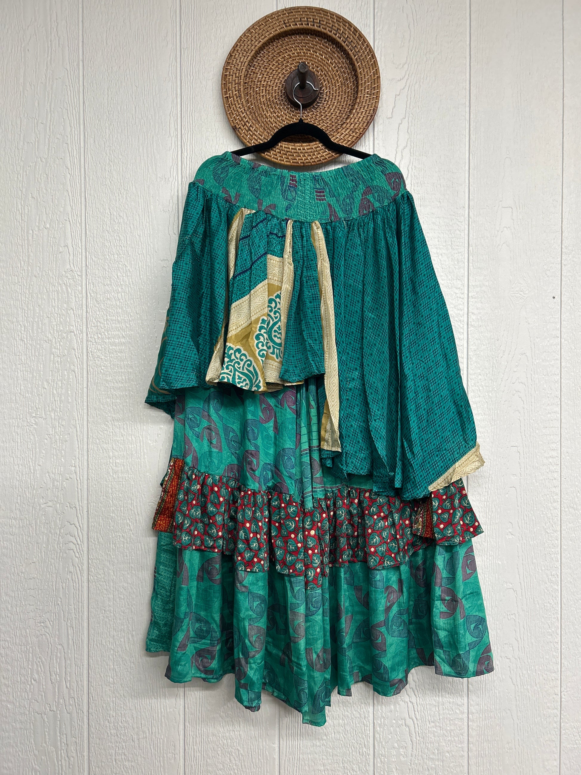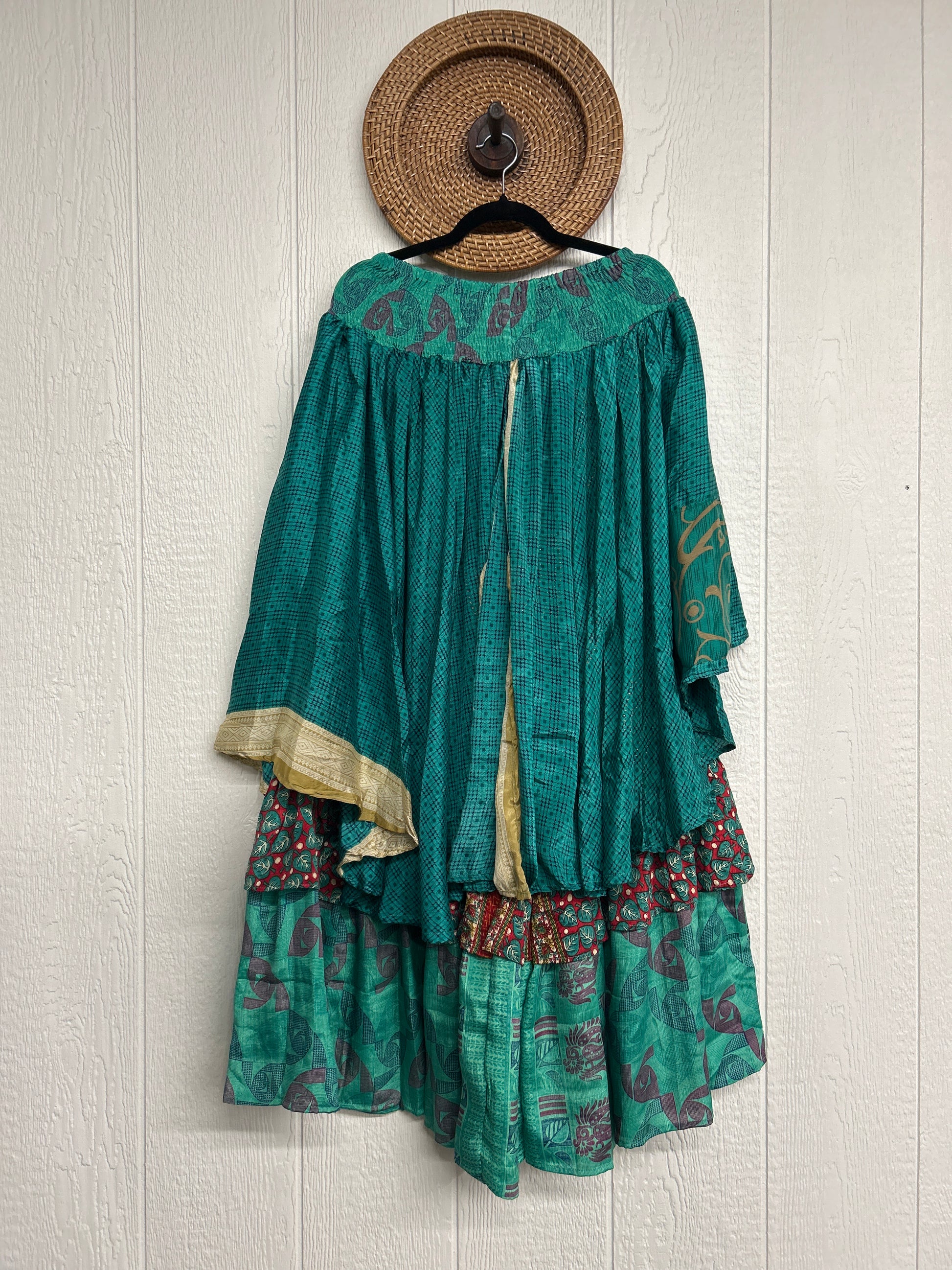 Crafted from vintage rasgulla sari these ethereal pants features stretchy waist, super wide legs, double tier hem and a skirt layer. these pants will make you want to dance! One size, recommended up to size 22/24 Crafted and sewn by families in a small village in Northern India providing work and a fair living. This product should be hand washed and line dried for longest life. For softness, fluff in the dryer on low heat after it has dried from hand washing. Disclosure: Our vintage styles have lived a full life before becoming the designs in our shop. Fabrics may have small threads or holes in the layers. Color inconsistency or small stains may be present. The saris are sewn together and extend the life of each design. Imperfections should be celebrated.