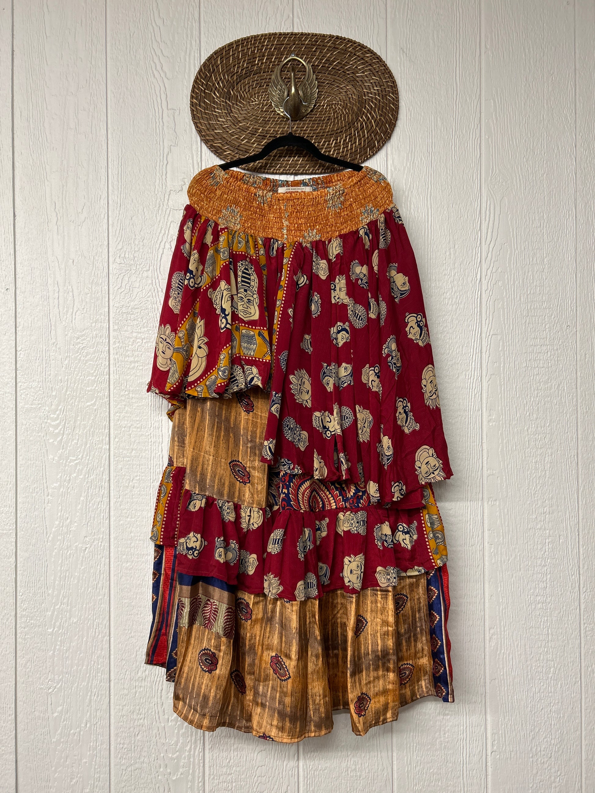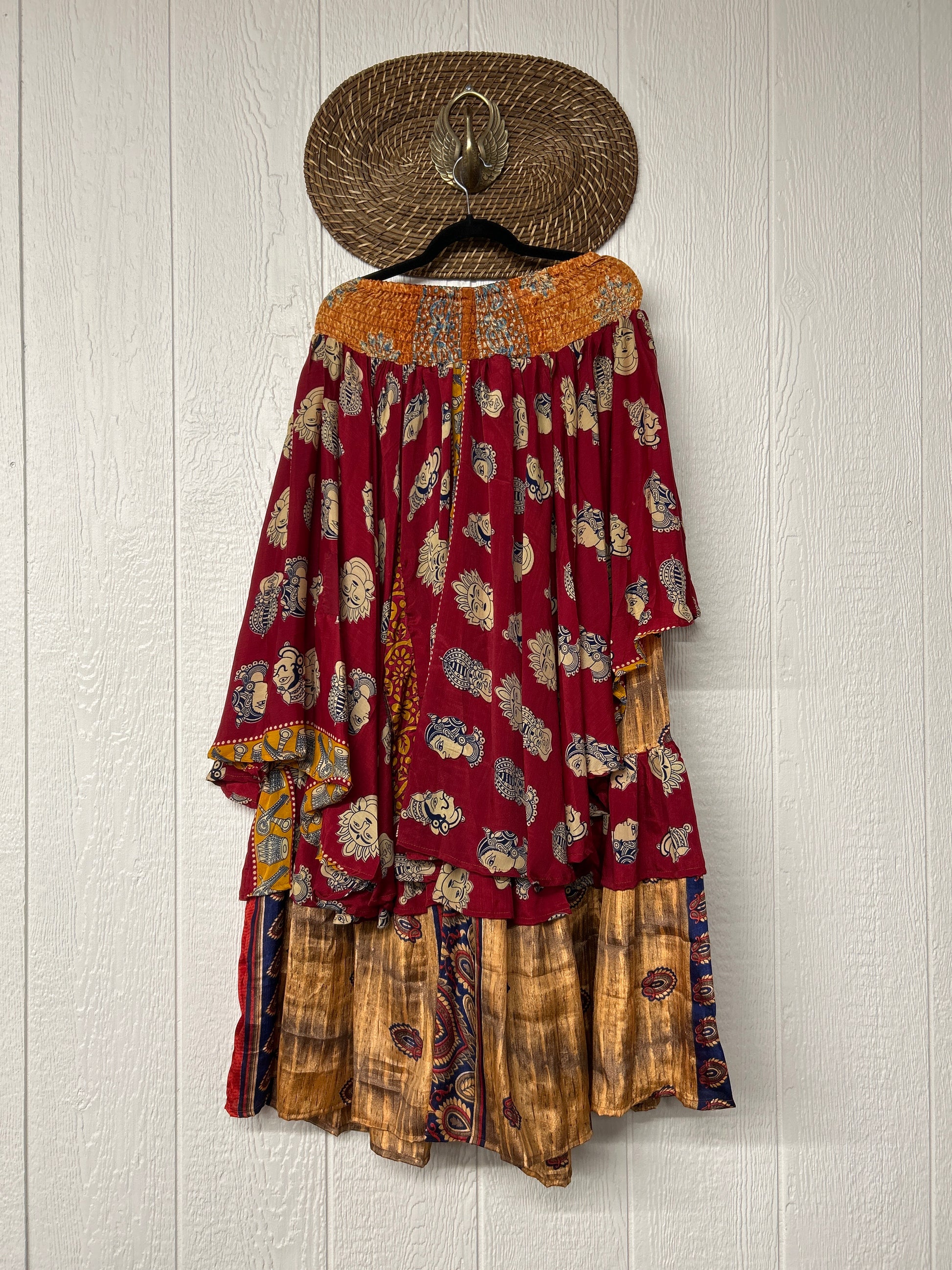 Crafted from vintage rasgulla sari these ethereal pants features stretchy waist, super wide legs, double tier hem and a skirt layer. these pants will make you want to dance! One size, recommended up to size 22/24 Crafted and sewn by families in a small village in Northern India providing work and a fair living. This product should be hand washed and line dried for longest life. For softness, fluff in the dryer on low heat after it has dried from hand washing. Disclosure: Our vintage styles have lived a full life before becoming the designs in our shop. Fabrics may have small threads or holes in the layers. Color inconsistency or small stains may be present. The saris are sewn together and extend the life of each design. Imperfections should be celebrated.