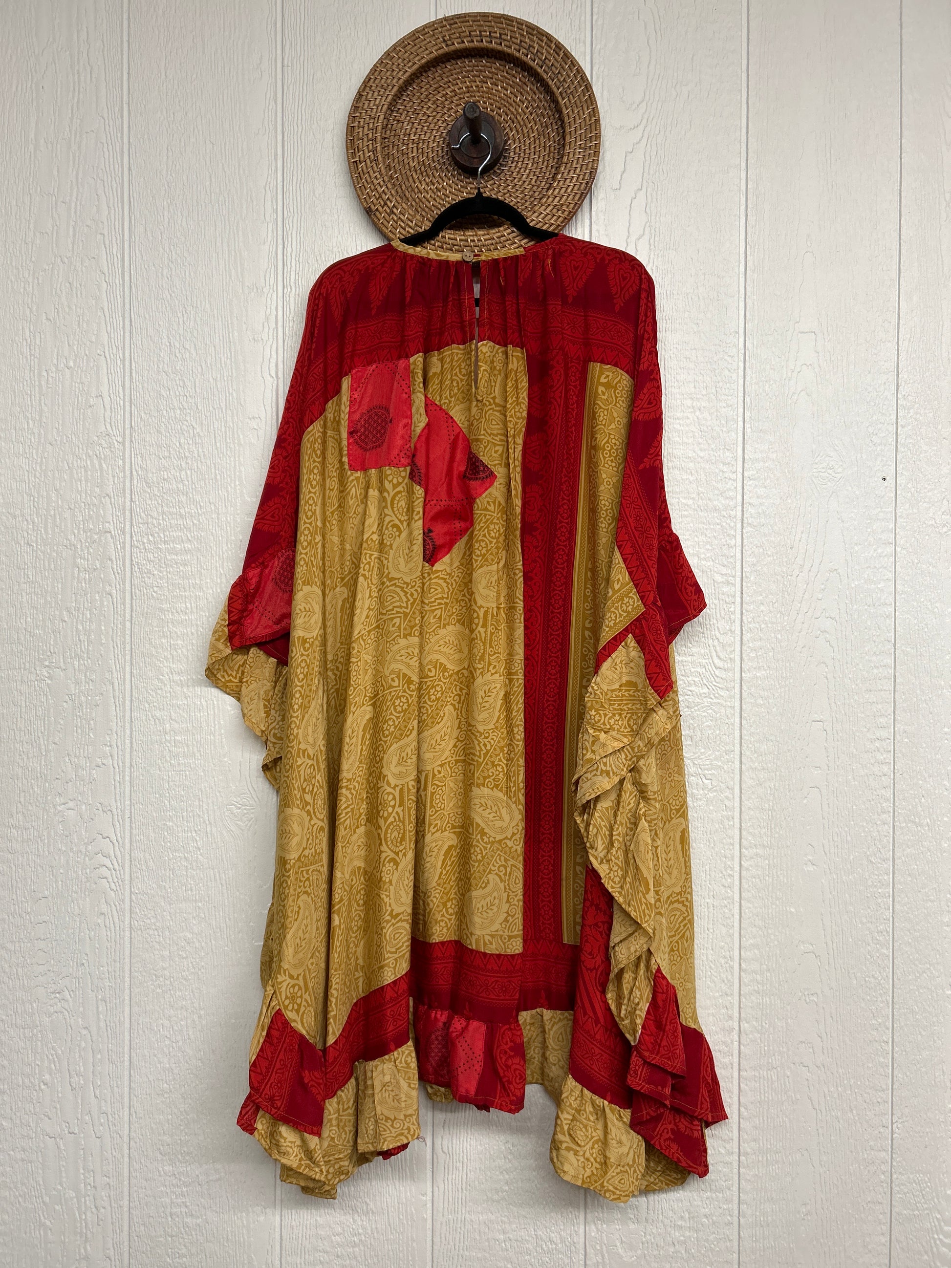 This dreamy muu is crafted from our ultra lux vintage rasgulla sari and features a button down placket and slouchy exterior pockets. Ruffles around the hem make this the ultimate rockstar layer that you can wear closed as a muu or open as a kimono!!