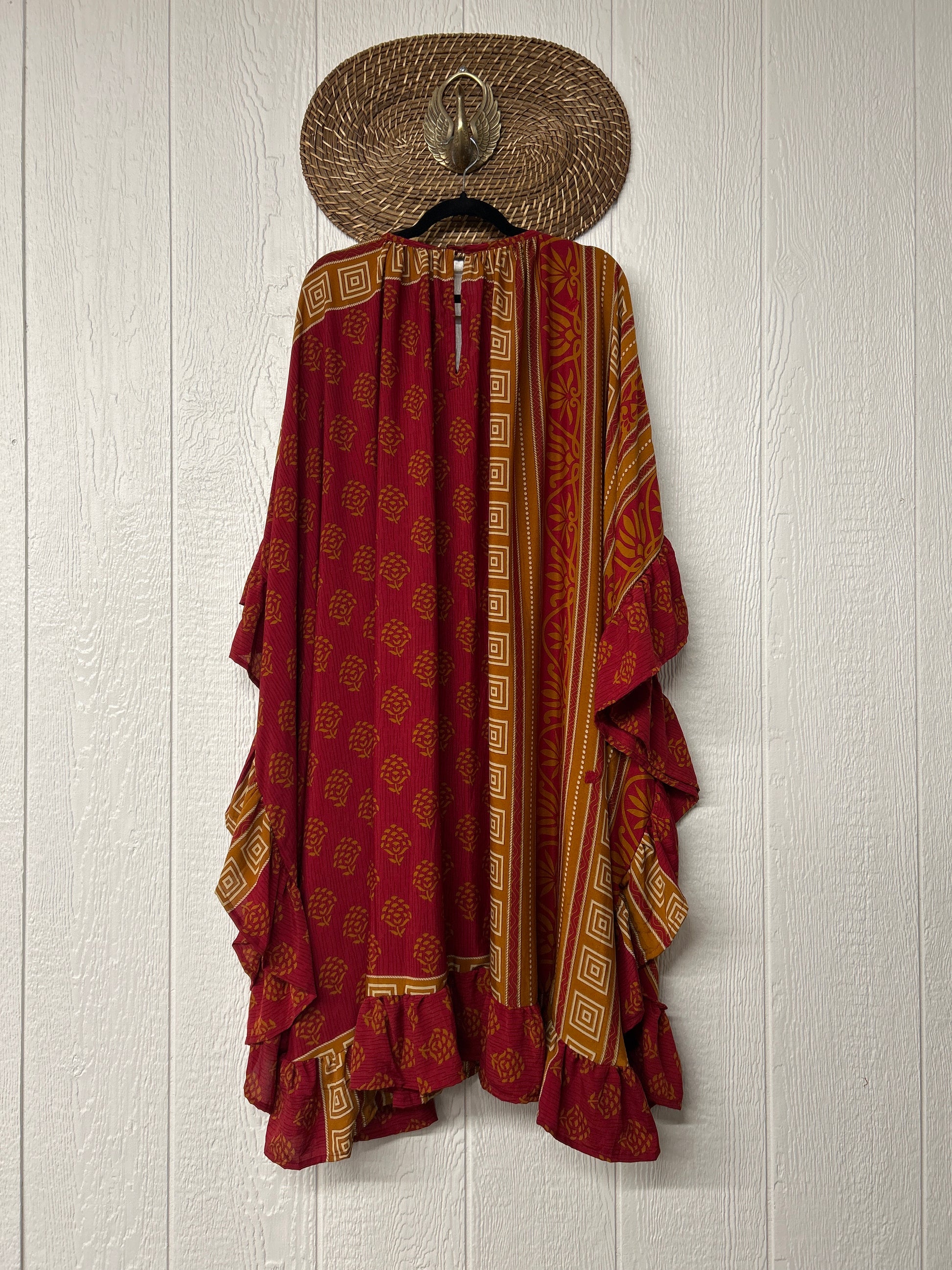 This dreamy muu is crafted from our ultra lux vintage rasgulla sari and features a button down placket and slouchy exterior pockets. Ruffles around the hem make this the ultimate rockstar layer that you can wear closed as a muu or open as a kimono!!