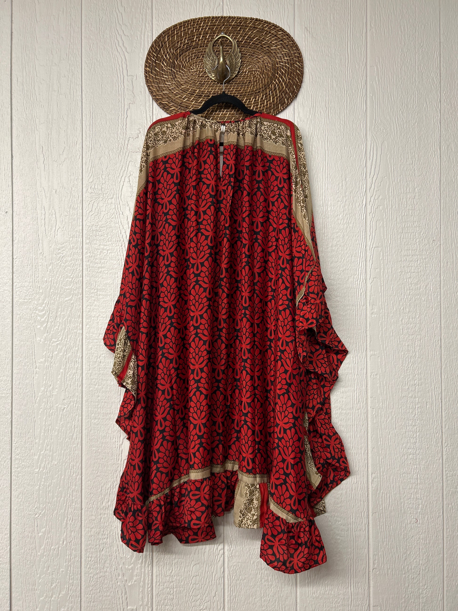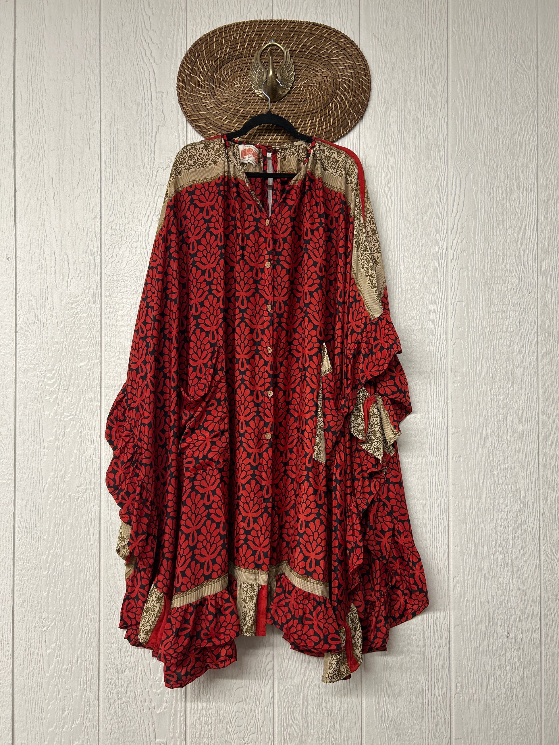 This dreamy muu is crafted from our ultra lux vintage rasgulla sari and features a button down placket and slouchy exterior pockets. Ruffles around the hem make this the ultimate rockstar layer that you can wear closed as a muu or open as a kimono!!