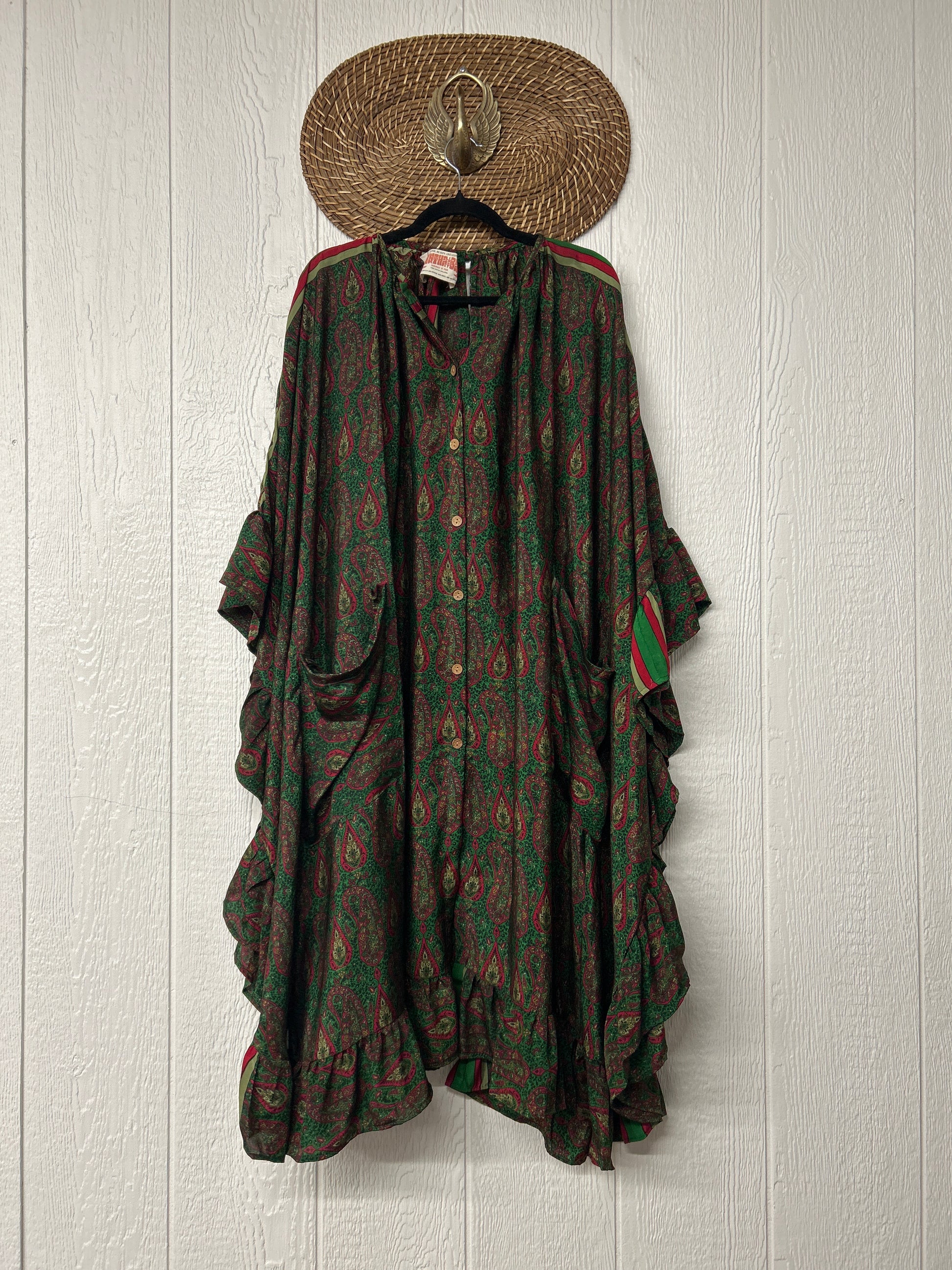 This dreamy muu is crafted from our ultra lux vintage rasgulla sari and features a button down placket and slouchy exterior pockets. Ruffles around the hem make this the ultimate rockstar layer that you can wear closed as a muu or open as a kimono!!