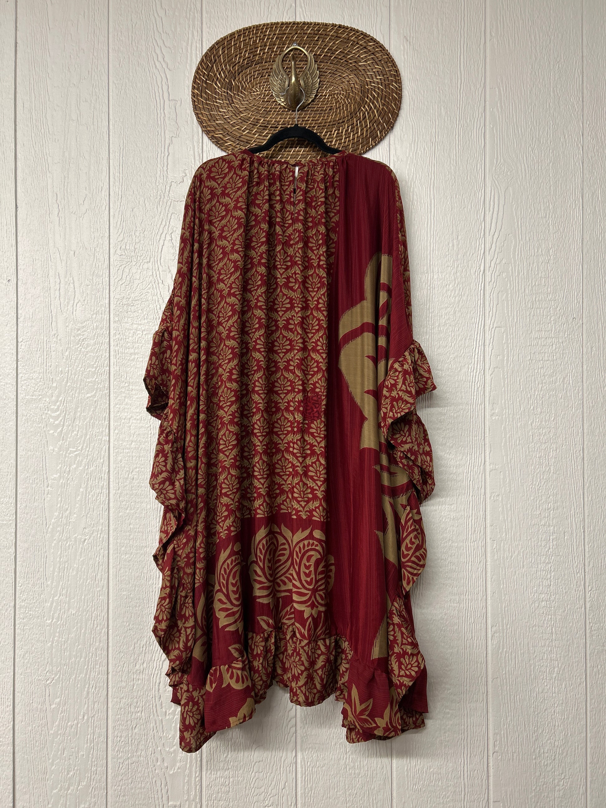 This dreamy muu is crafted from our ultra lux vintage rasgulla sari and features a button down placket and slouchy exterior pockets. Ruffles around the hem make this the ultimate rockstar layer that you can wear closed as a muu or open as a kimono!!