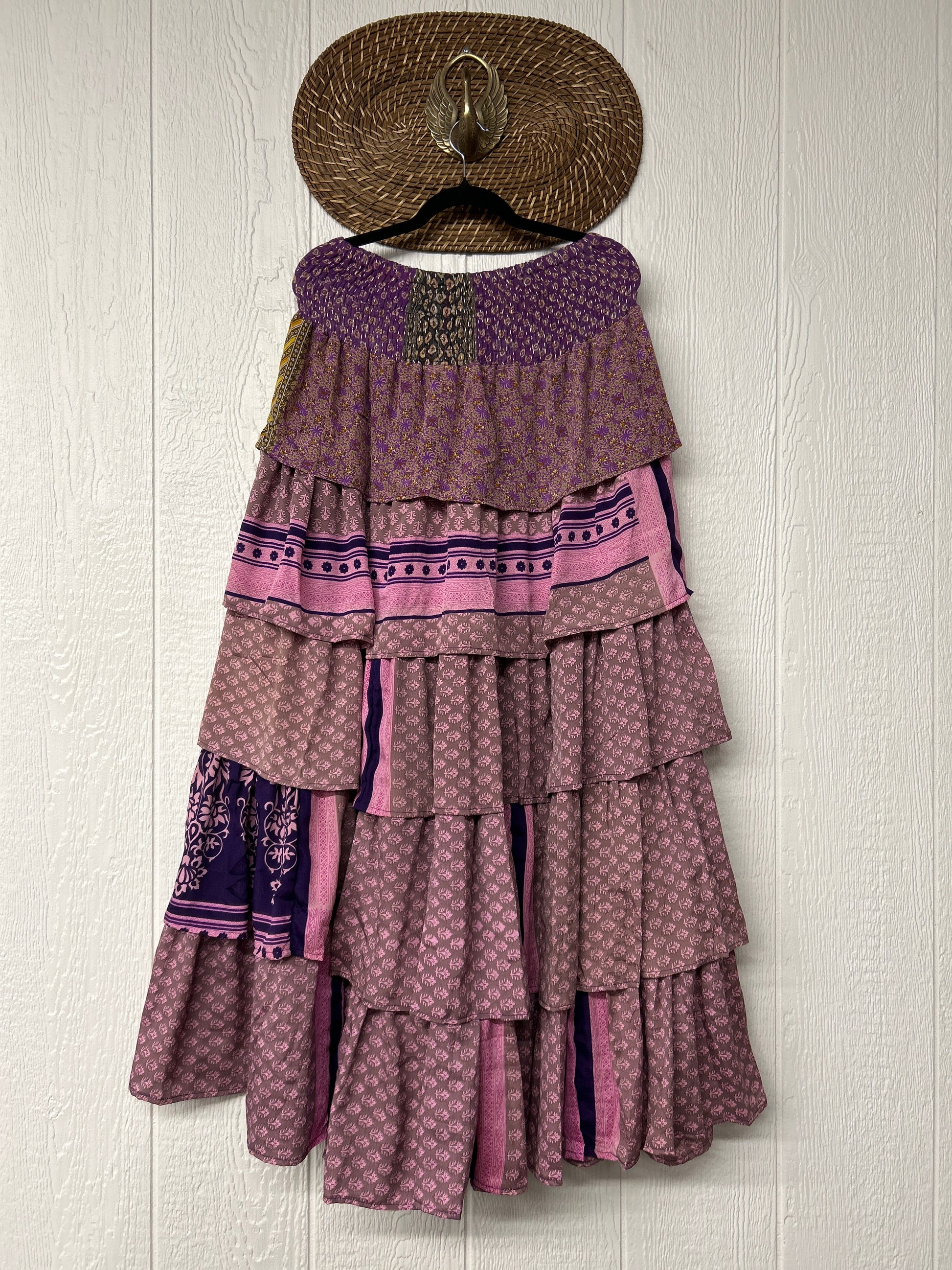 Crafted from vintage rasgulla sari, this ethereal piece features a stretchy ruffle waistband, a tiered floaty ruffle skirt.