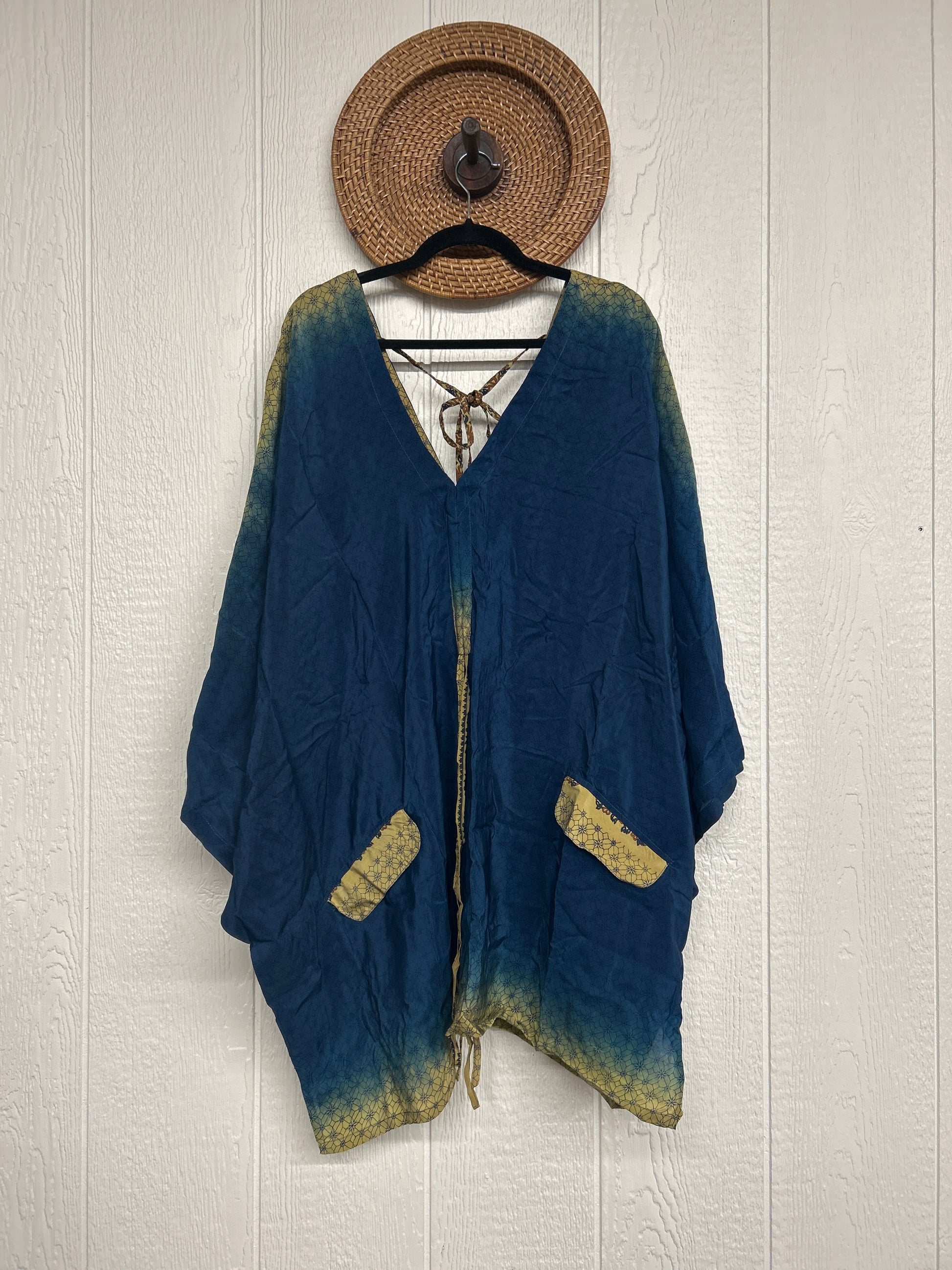 Fabrics may have small threads or holes in the layers. Color inconsistency or small stains may be present. The saris are sewn together and extend the life of each design. Imperfections should be celebrated.