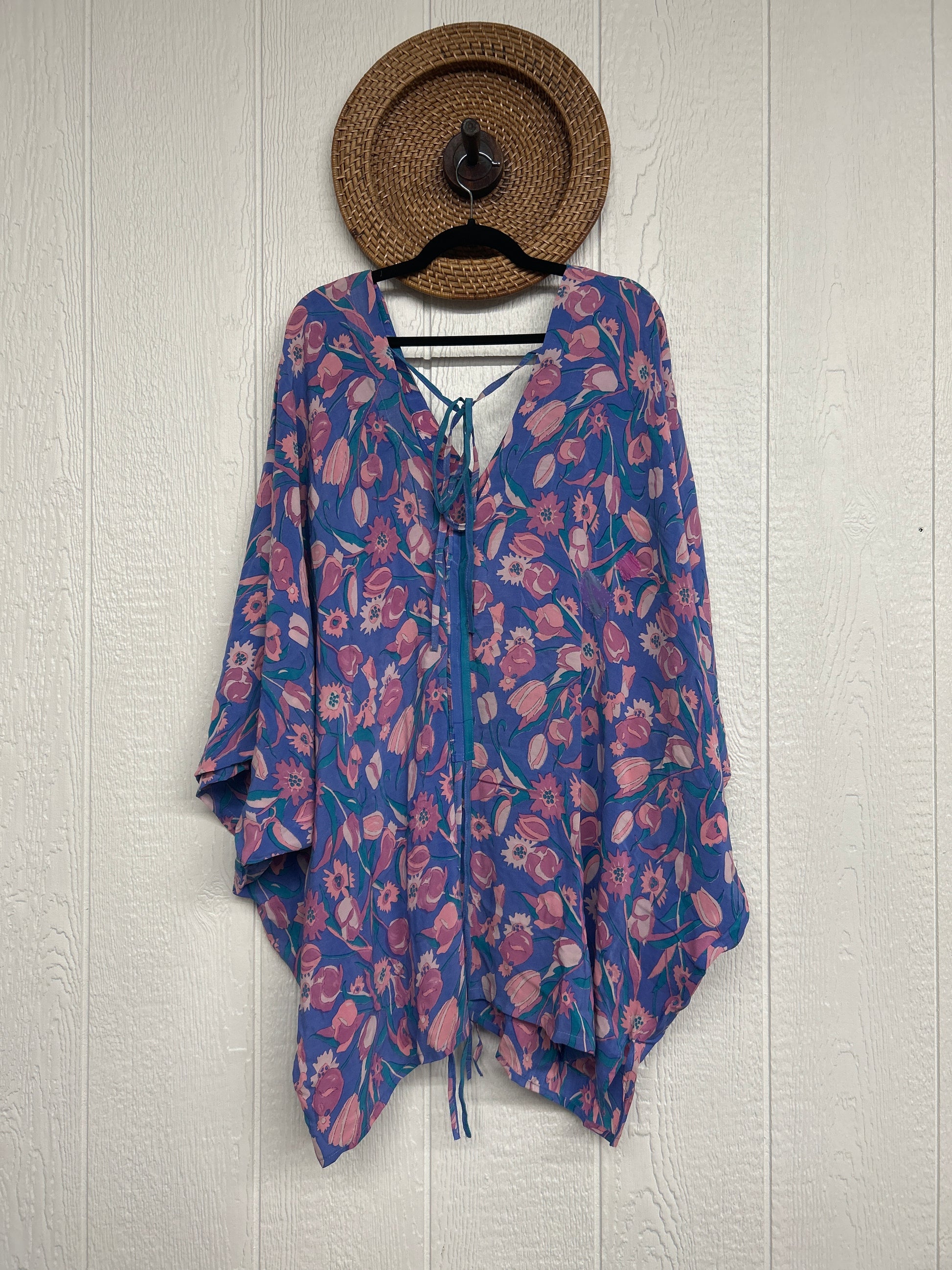 Fabrics may have small threads or holes in the layers. Color inconsistency or small stains may be present. The saris are sewn together and extend the life of each design. Imperfections should be celebrated.