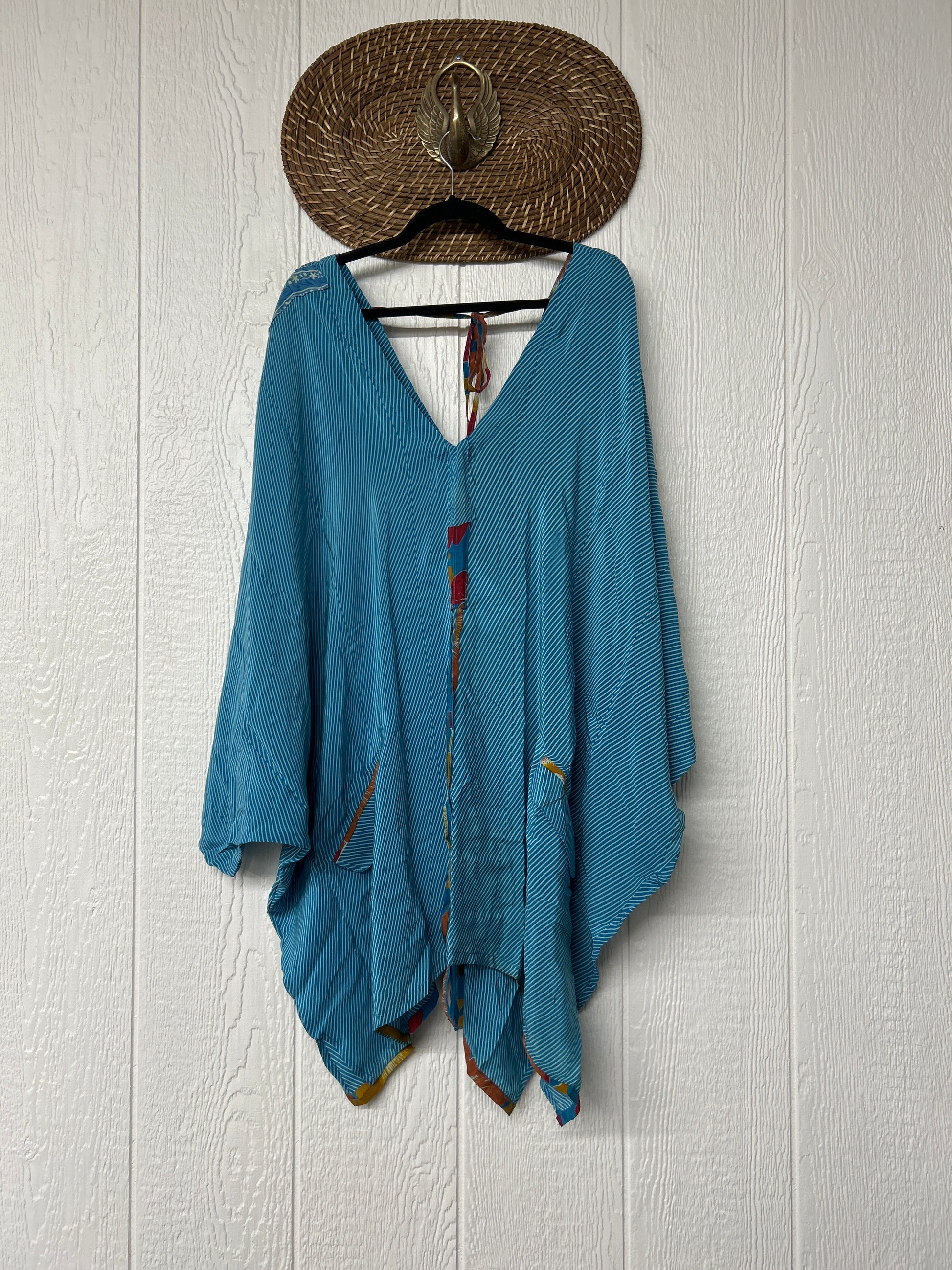 Fabrics may have small threads or holes in the layers. Color inconsistency or small stains may be present. The saris are sewn together and extend the life of each design. Imperfections should be celebrated.
