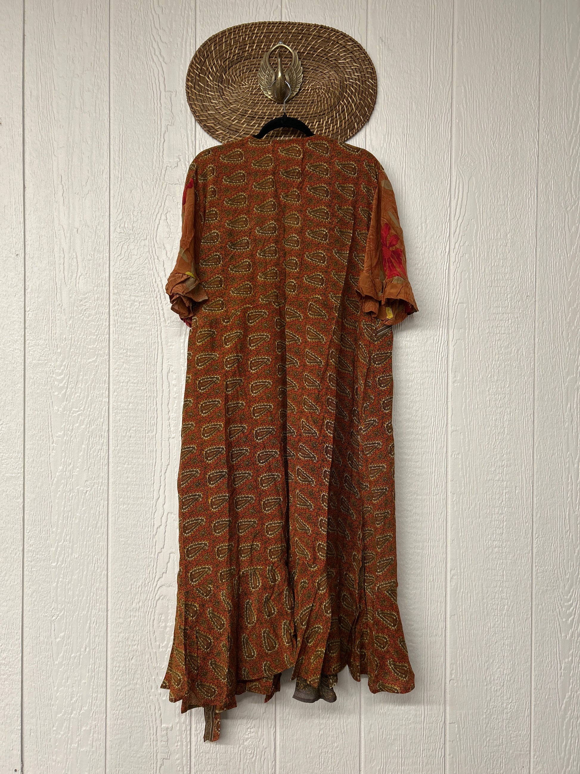The Summer Flourish Wrap Dress is crafted from our ultra lux vintage crepe sari. Features short bell sleeves, ruffle details throughout and a built in sash belt which wraps around the body to make this beauty fully customizable for a wide range of sizes. You can also wear the Flourish open as a vibey kimono over your favorite outfit. We're obsessed!