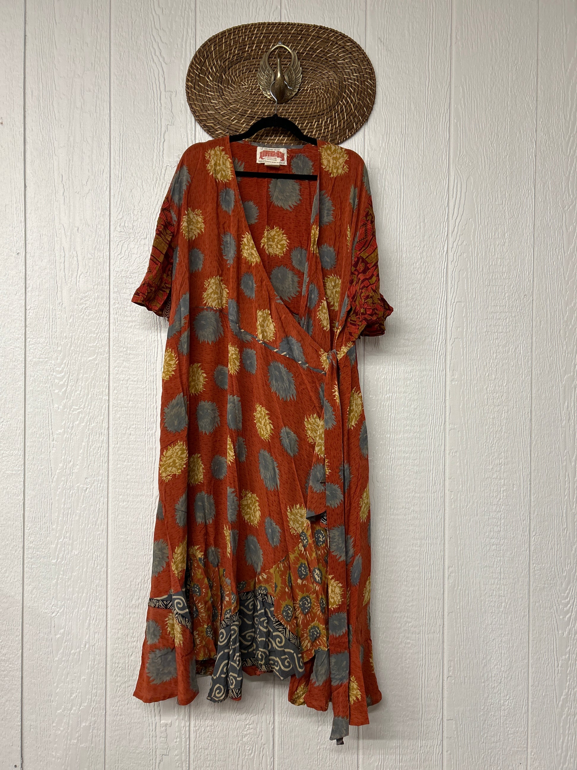 The Summer Flourish Wrap Dress is crafted from our ultra lux vintage crepe sari. Features short bell sleeves, ruffle details throughout and a built in sash belt which wraps around the body to make this beauty fully customizable for a wide range of sizes. You can also wear the Flourish open as a vibey kimono over your favorite outfit. We're obsessed!