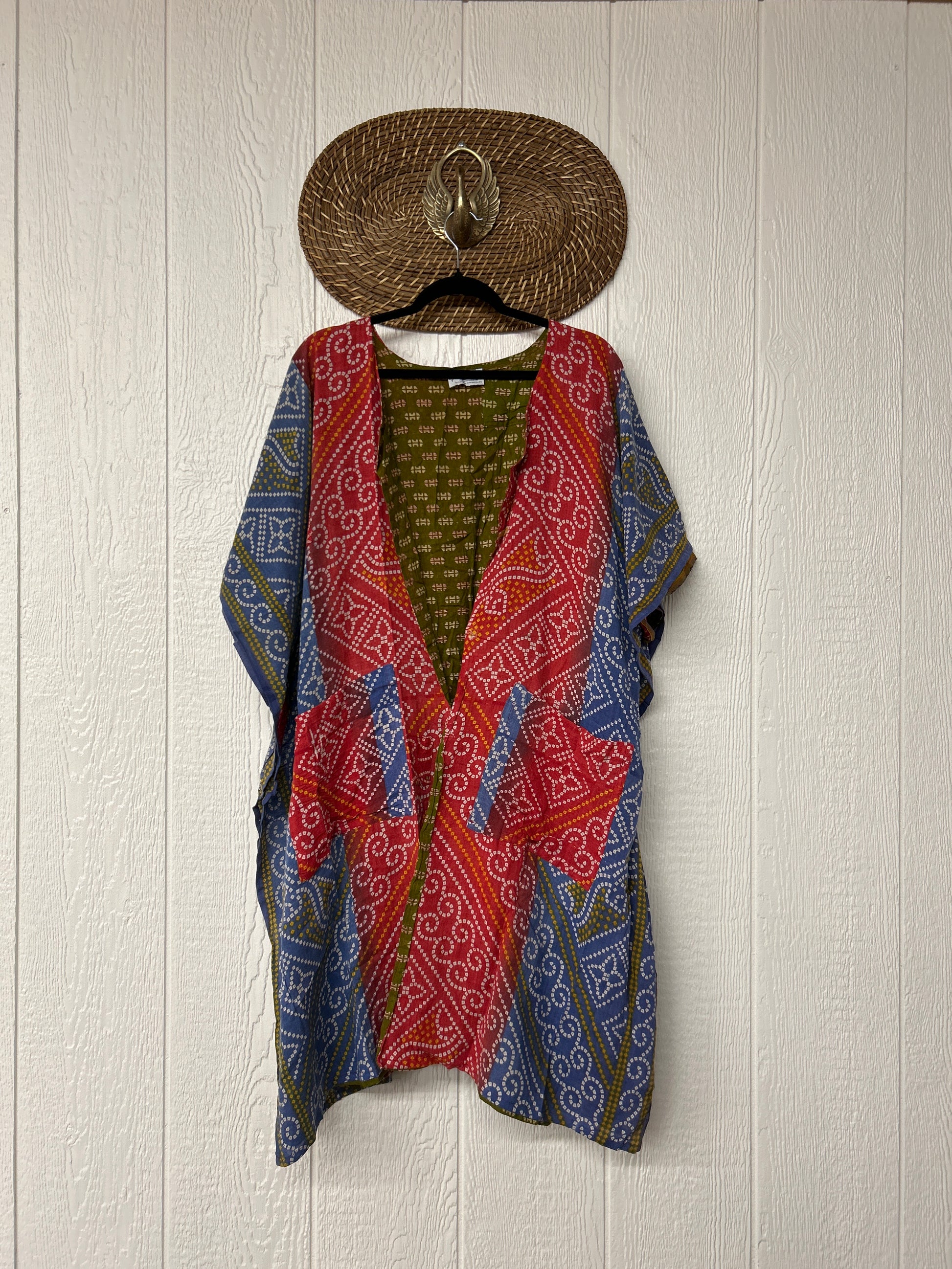 The Take It Easy Summer Kimono is next level comfort. Double vintage cotton sari, fully reversible, slouchy pockets inside and outside and side slits for extra dimension.