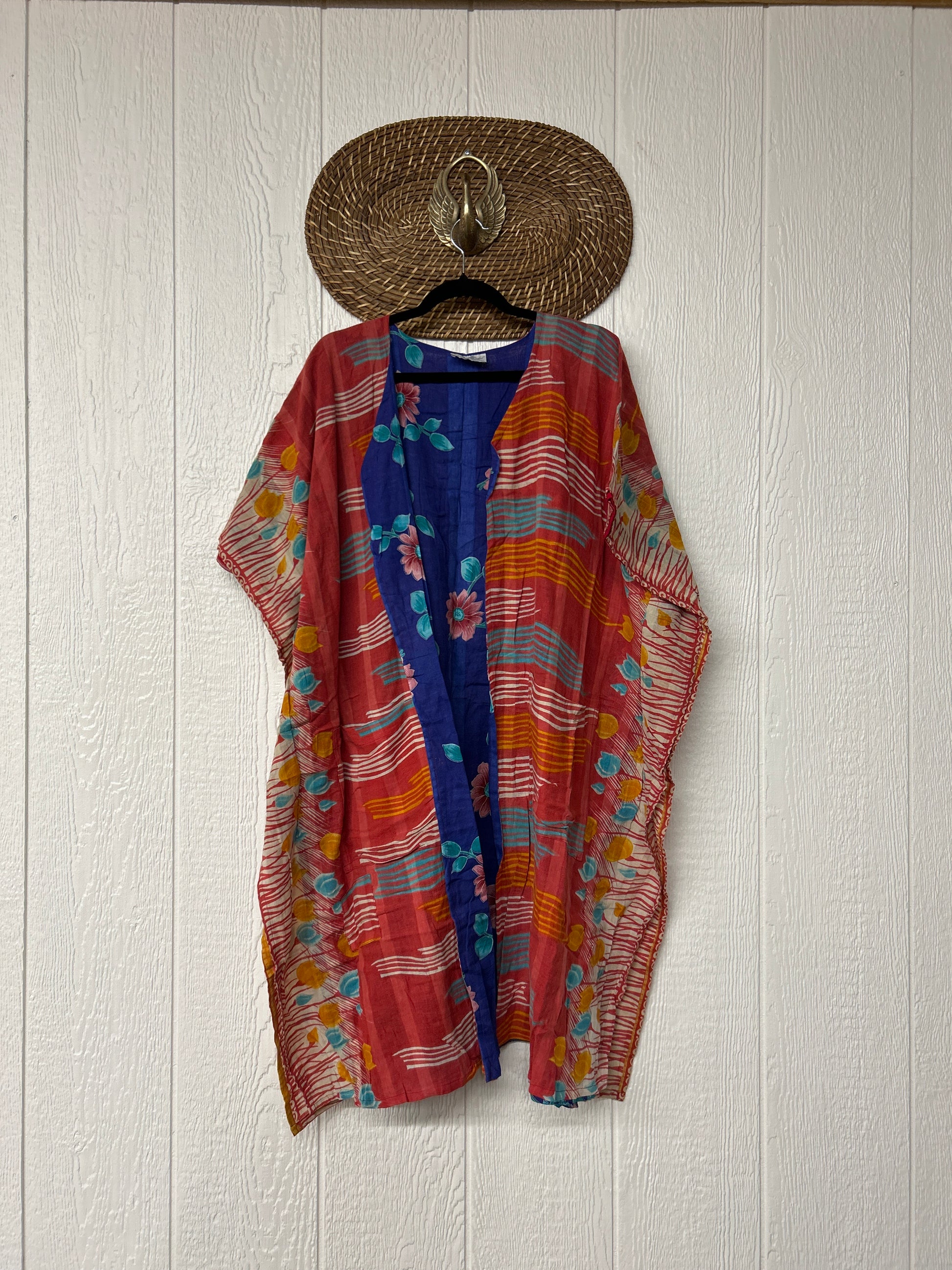 The Take It Easy Summer Kimono is next level comfort. Double vintage cotton sari, fully reversible, slouchy pockets inside and outside and side slits for extra dimension.