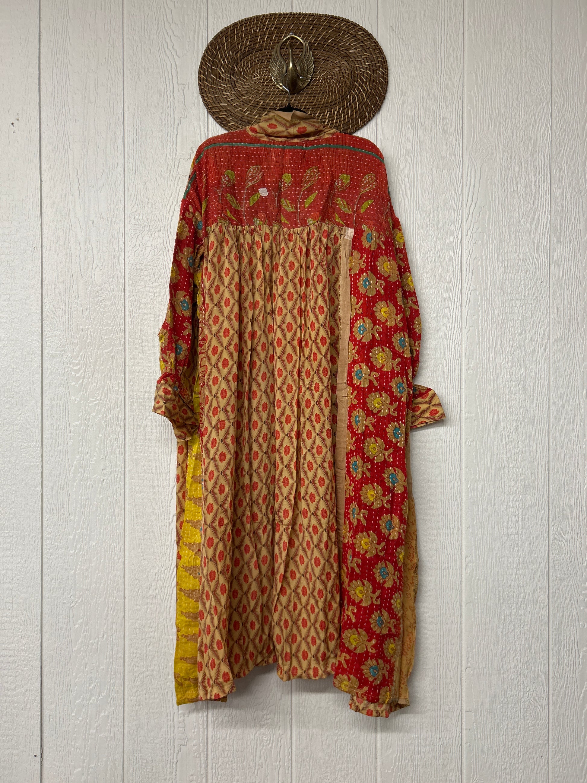 This dream layering piece is made from a mix of our lux vintage kantha embroidered cotton and crepe sari. Features an elastic ruffle sleeve that is easy to pull up or down to your desired length.