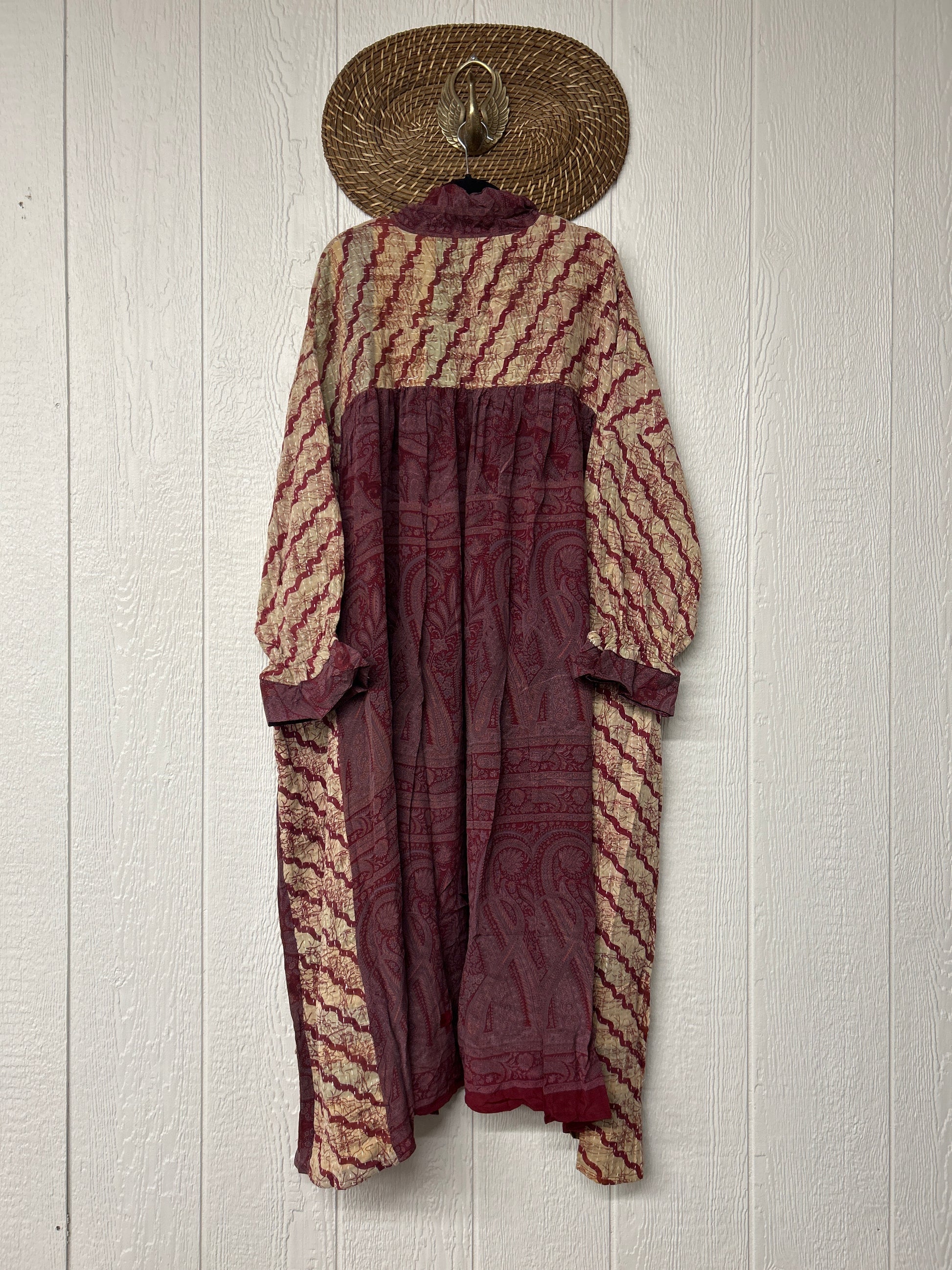 Crafted and sewn by families in a small village in Northern India providing work and a fair living. This product should be hand washed and line dried for longest life. For softness, fluff in the dryer on low heat after it has dried from hand washing. Disclosure: Our vintage styles have lived a full life before becoming the designs in our shop. Fabrics may have small threads or holes in the layers. Color inconsistency or small stains may be present. The saris are sewn together and extend the life of each design. Imperfections should be celebrated.