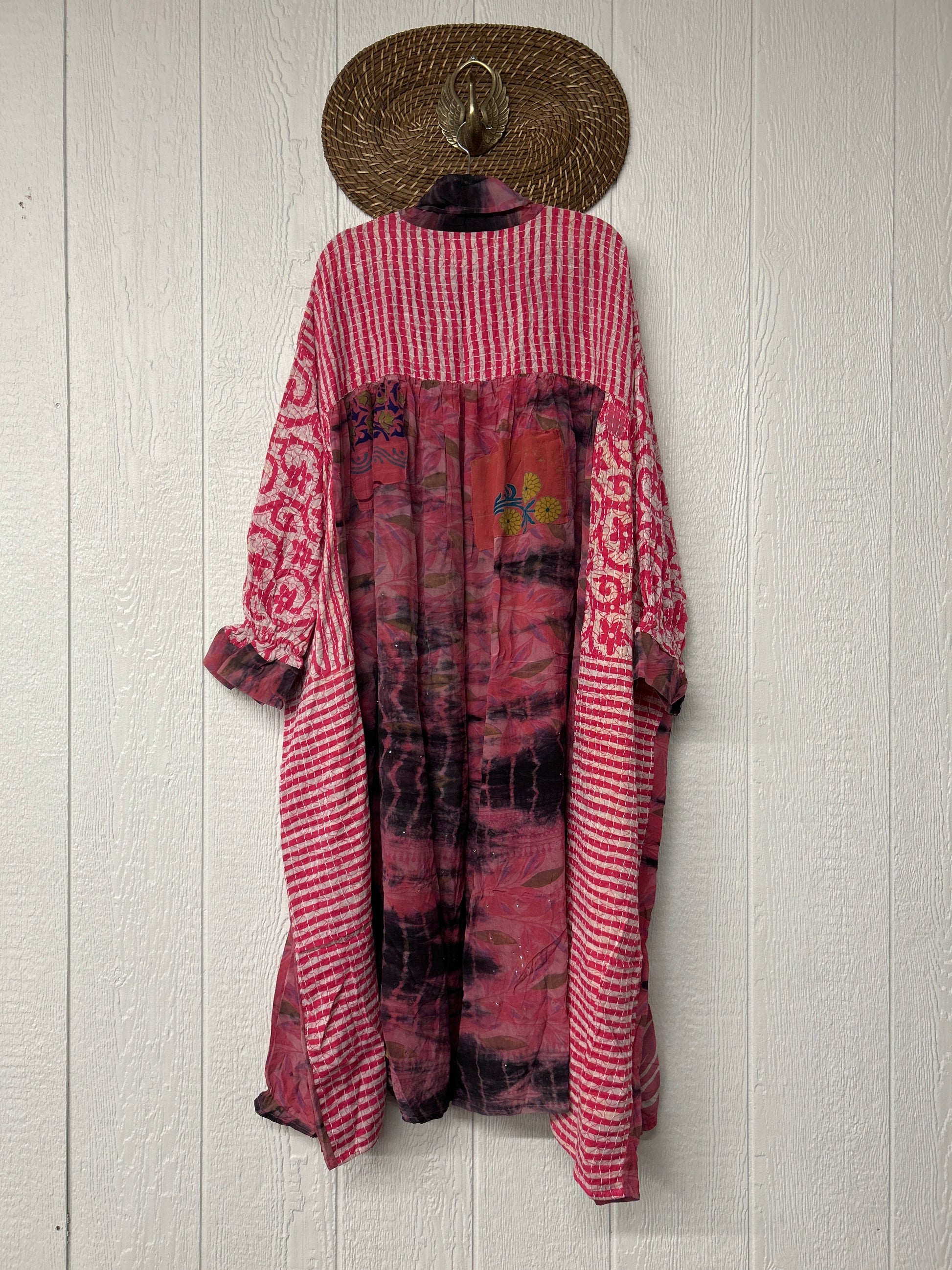 This dream layering piece is made from a mix of our lux vintage kantha embroidered cotton and crepe sari. Features an elastic ruffle sleeve that is easy to pull up or down to your desired length.