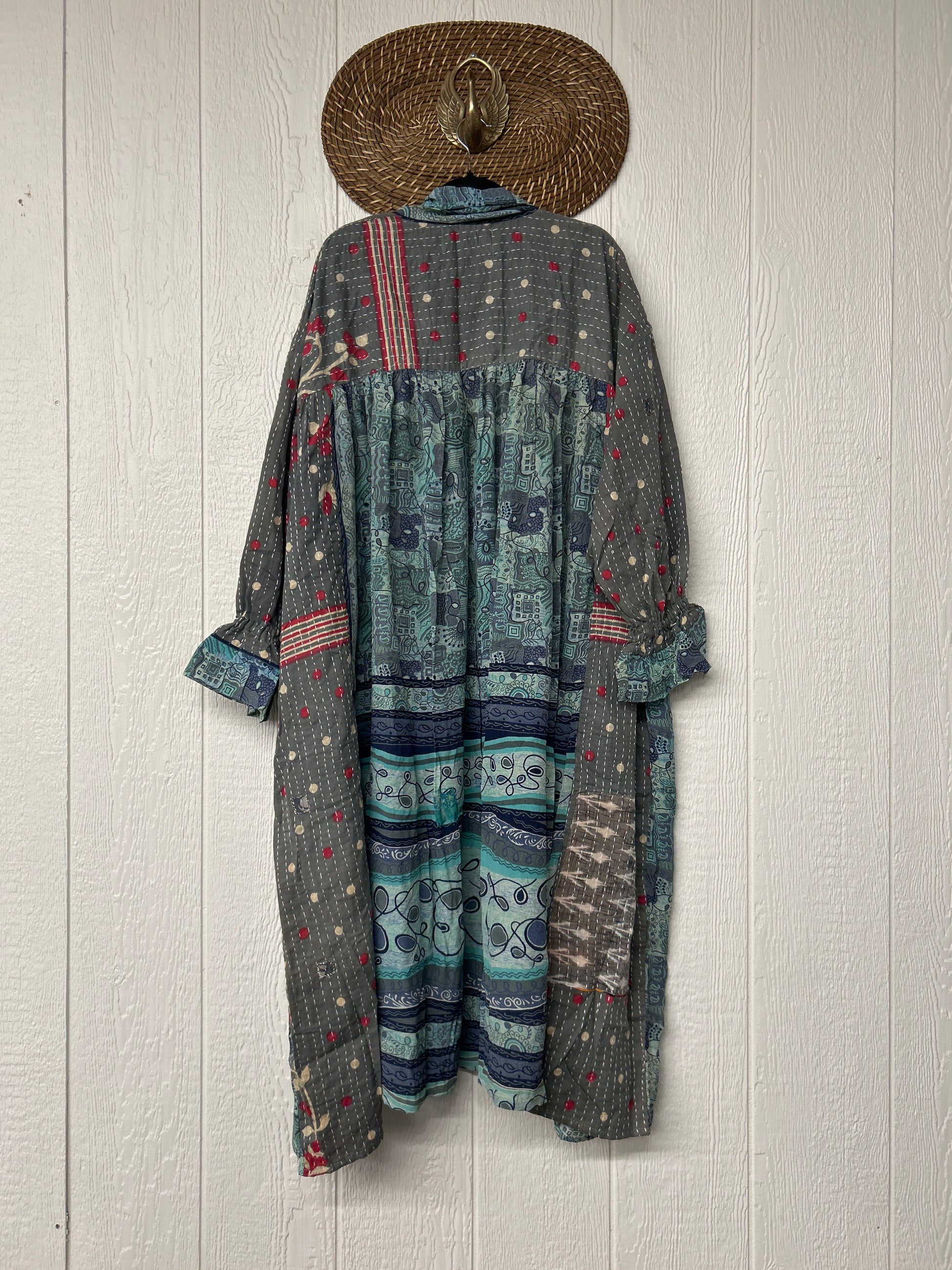 This dream layering piece is made from a mix of our lux vintage kantha embroidered cotton and crepe sari. Features an elastic ruffle sleeve that is easy to pull up or down to your desired length.