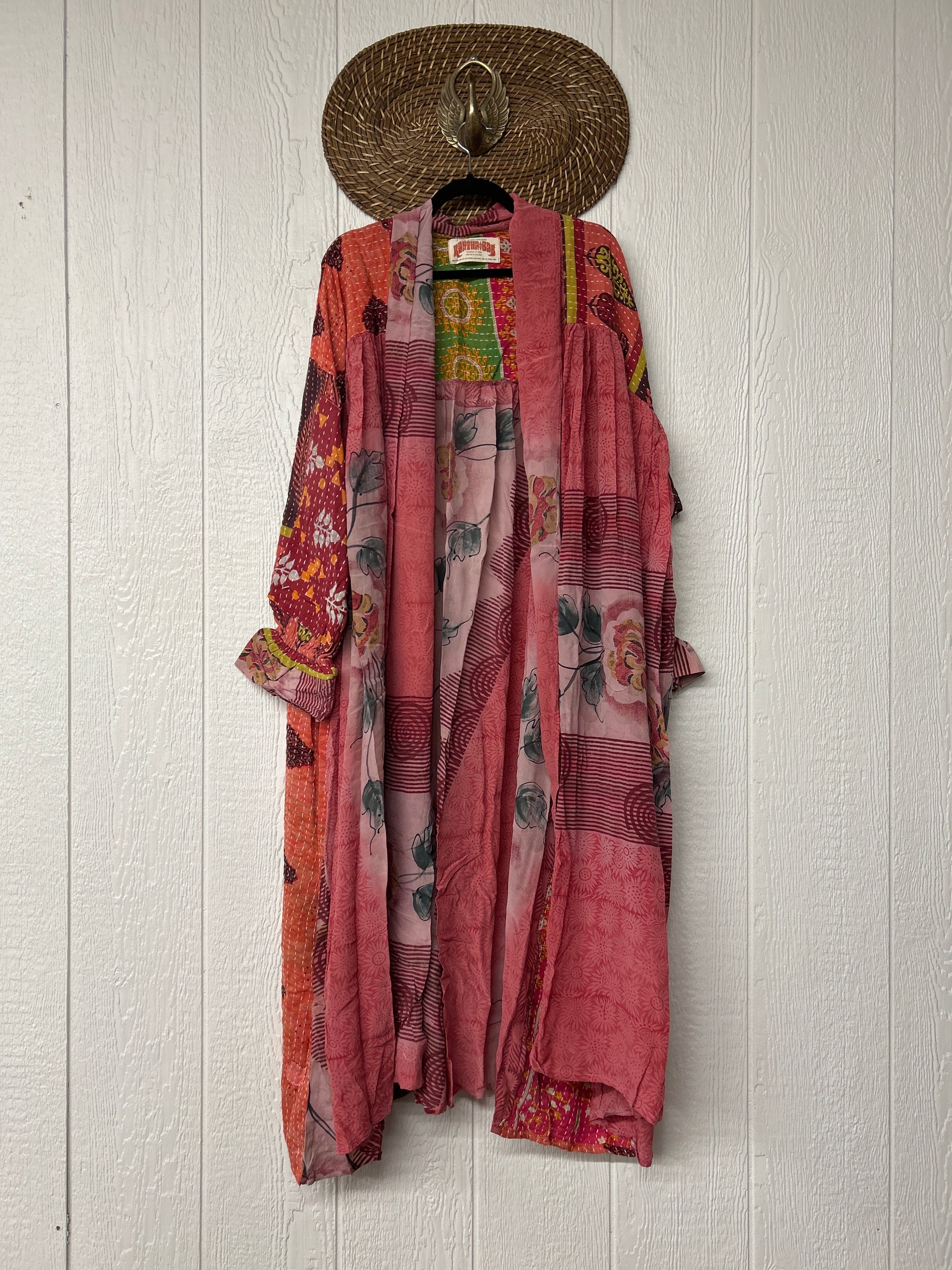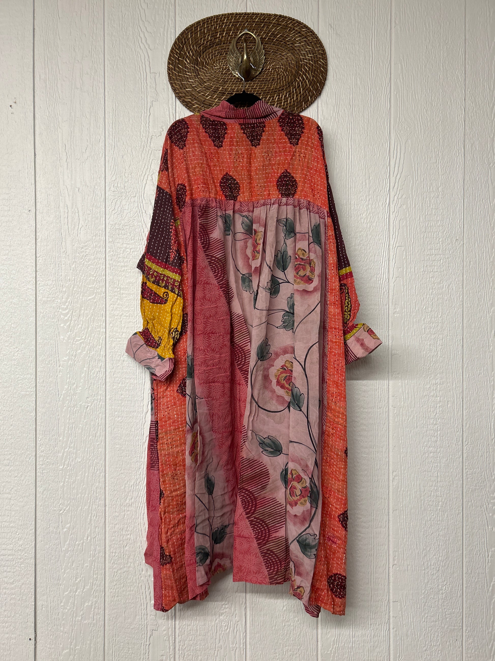 This dream layering piece is made from a mix of our lux vintage kantha embroidered cotton and crepe sari. Features an elastic ruffle sleeve that is easy to pull up or down to your desired length.