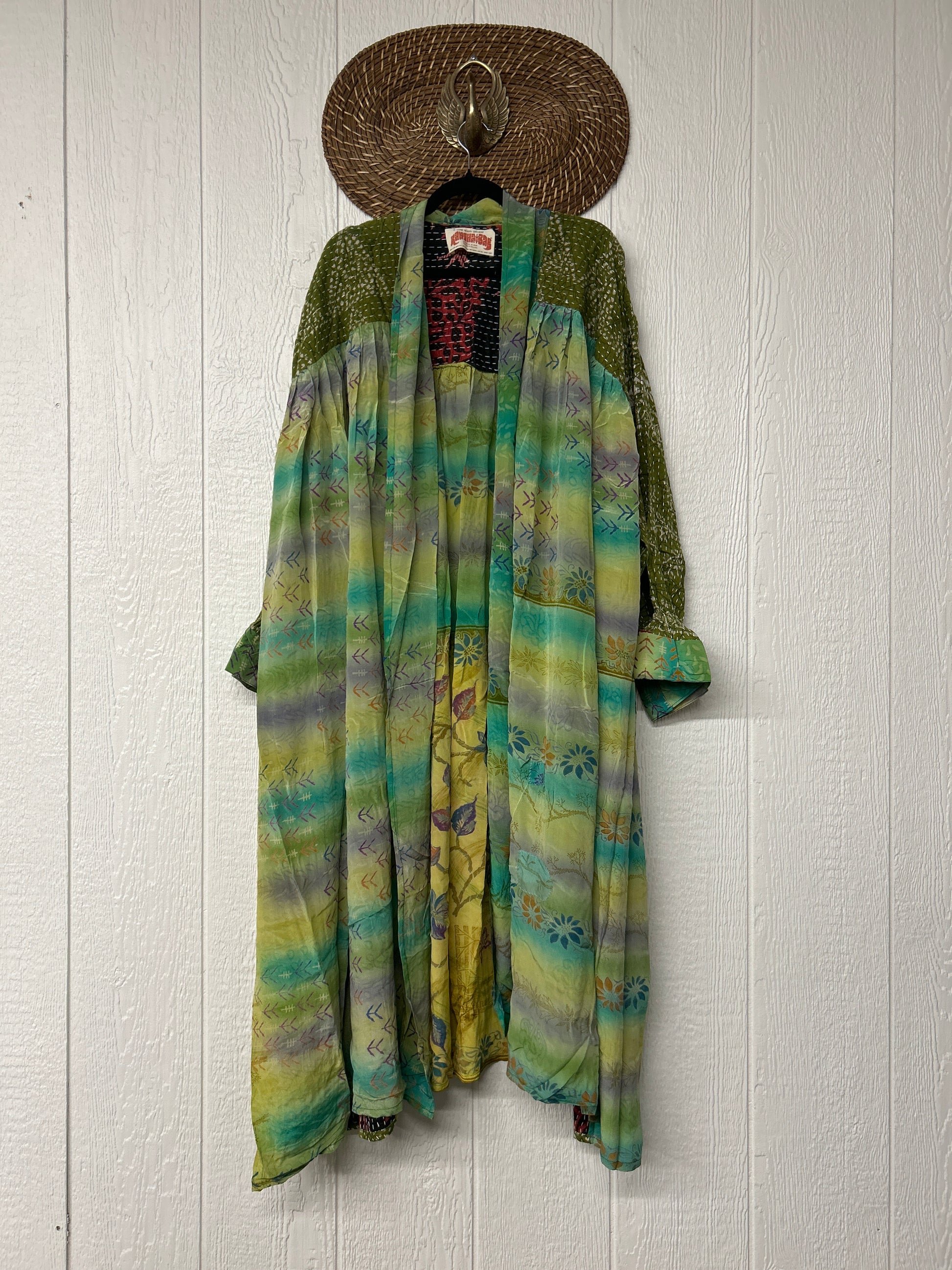 This dream layering piece is made from a mix of our lux vintage kantha embroidered cotton and crepe sari. Features an elastic ruffle sleeve that is easy to pull up or down to your desired length.